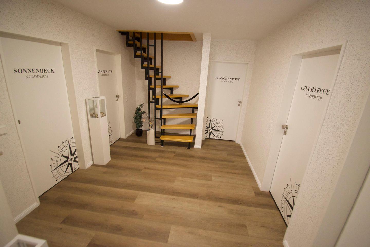 Dank der zentralen und dennoch ruhigen Lage in Norddeich erreichen Sie Strand, Fähre nach Norderney, Restaurants und Einkaufsmöglichkeiten bequem in wenigen Gehminuten.
