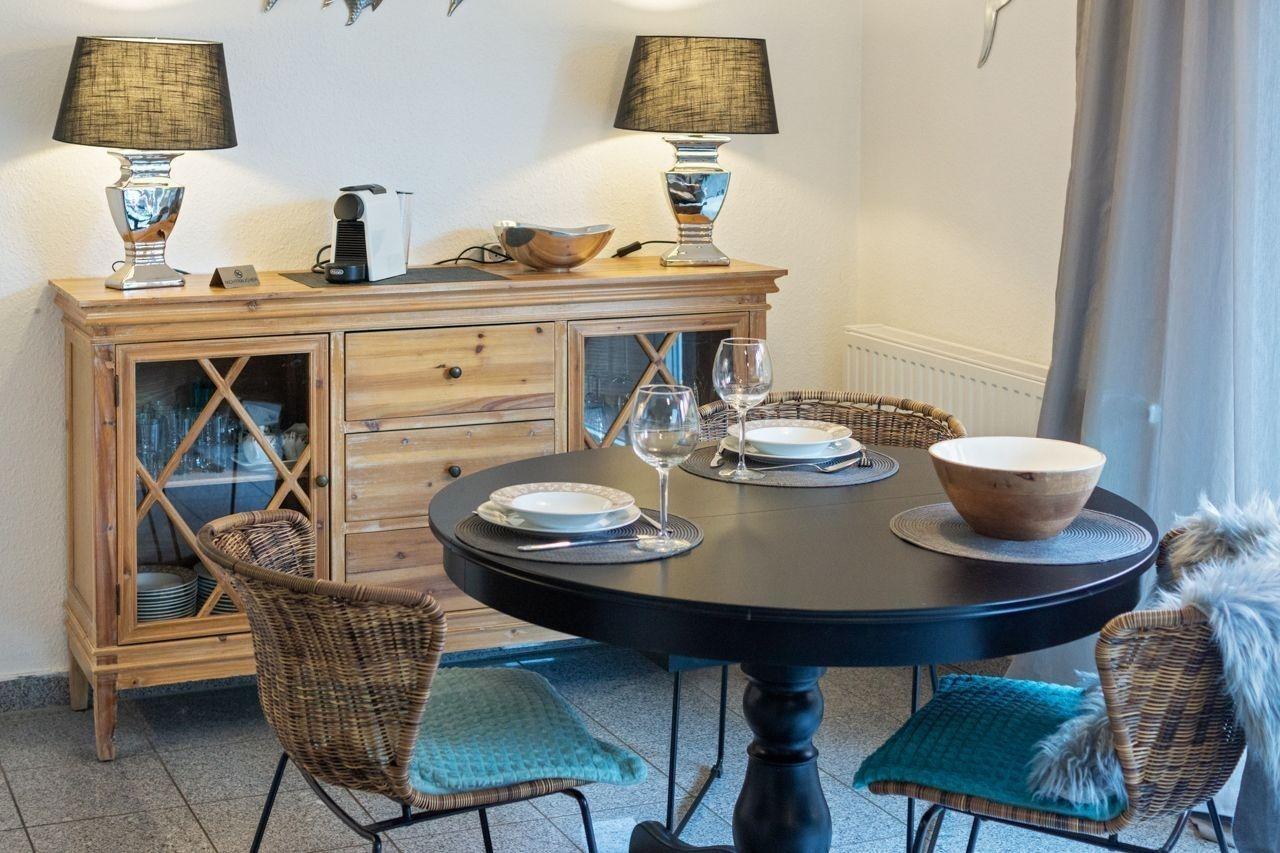 Auch die technische Ausstattung des Wohnzimmers ist hervorragend aufeinander abgestimmt. Für moderne Unterhaltungsmöglichkeiten sorgt der Flat-TV mit SAT-TV und DVD-Spieler. Ein CD-Player mit Radio steht ebenfalls zur Verfügung. Für gesellige Stunden erwartet Sie eine Auswahl an Gesellschaftsspielen bereits in der Wohnung.