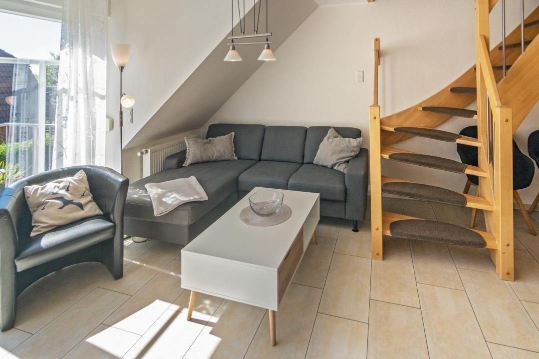Zahlreiche Geschäfte, Cafés und Restaurants haben sich im Ortskern angesiedelt, so dass es in der Nachbarschaft reichlich zu entdecken gibt. Durch die Lage in direkter Nähe zum Bahnhof eignet sich die Wohnung zudem auch für Reisende, die die Nordsee ohne Auto genießen wollen.