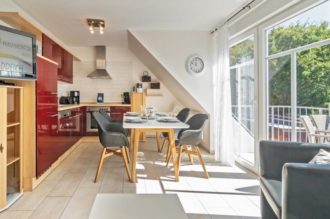 Komfortable Ferienwohnung in Norddeich mit Balkon, moderner Ausstattung und Nähe zum Strand.