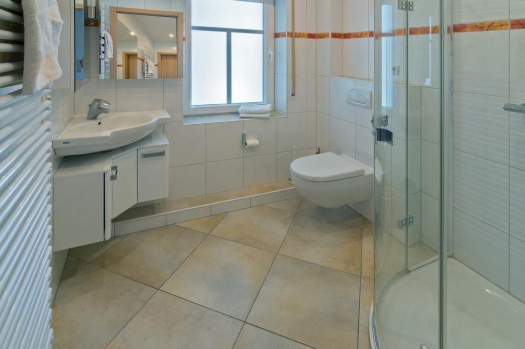 Im Badezimmer finden Sie eine Dusche und einen Haartrockner.