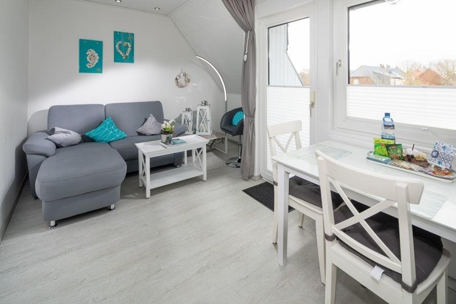 Moderne Ferienwohnung mit Balkon in Norden Norddeich, ideal für entspannte Urlaubstage an der Nordseeküste.
