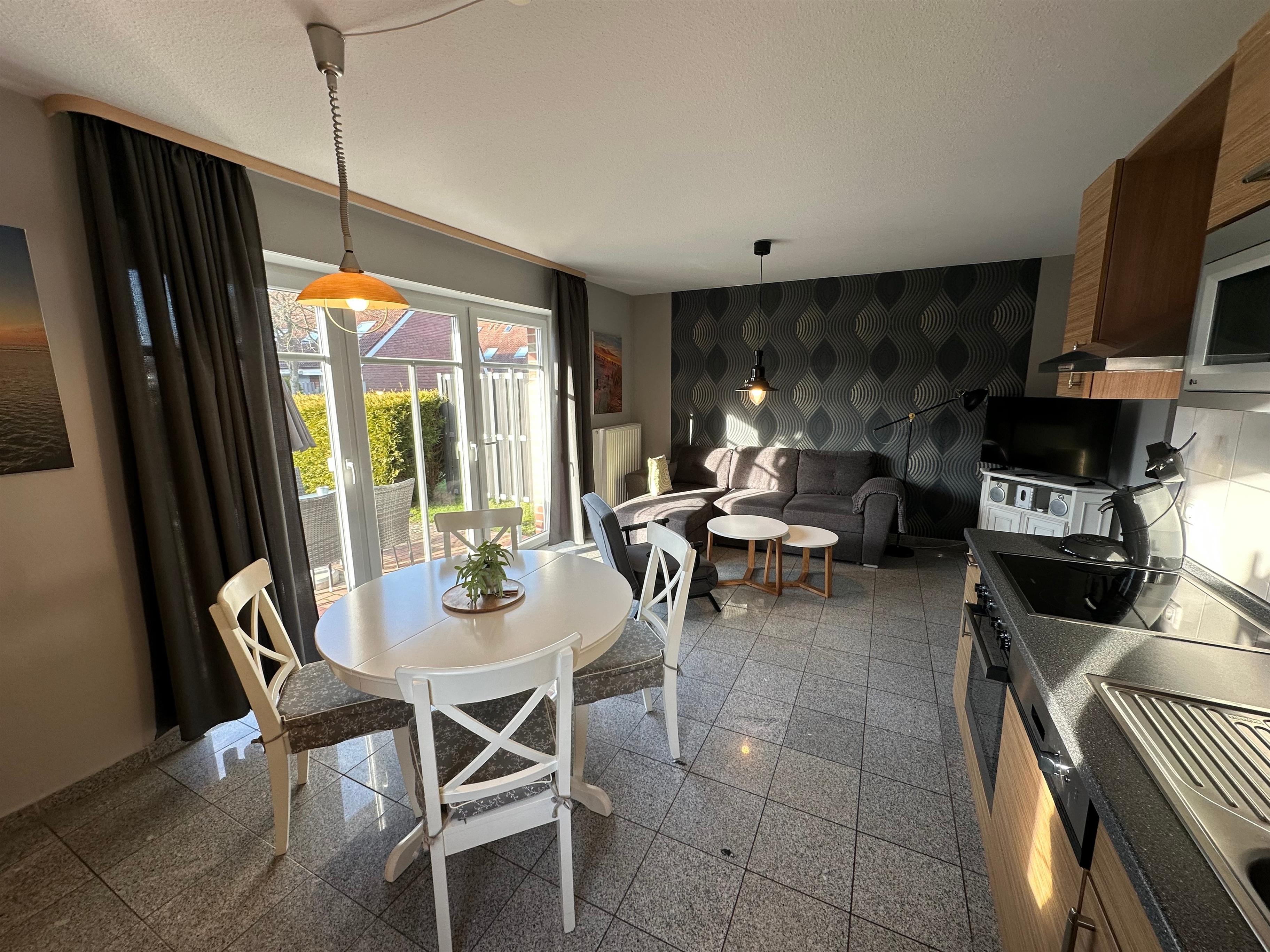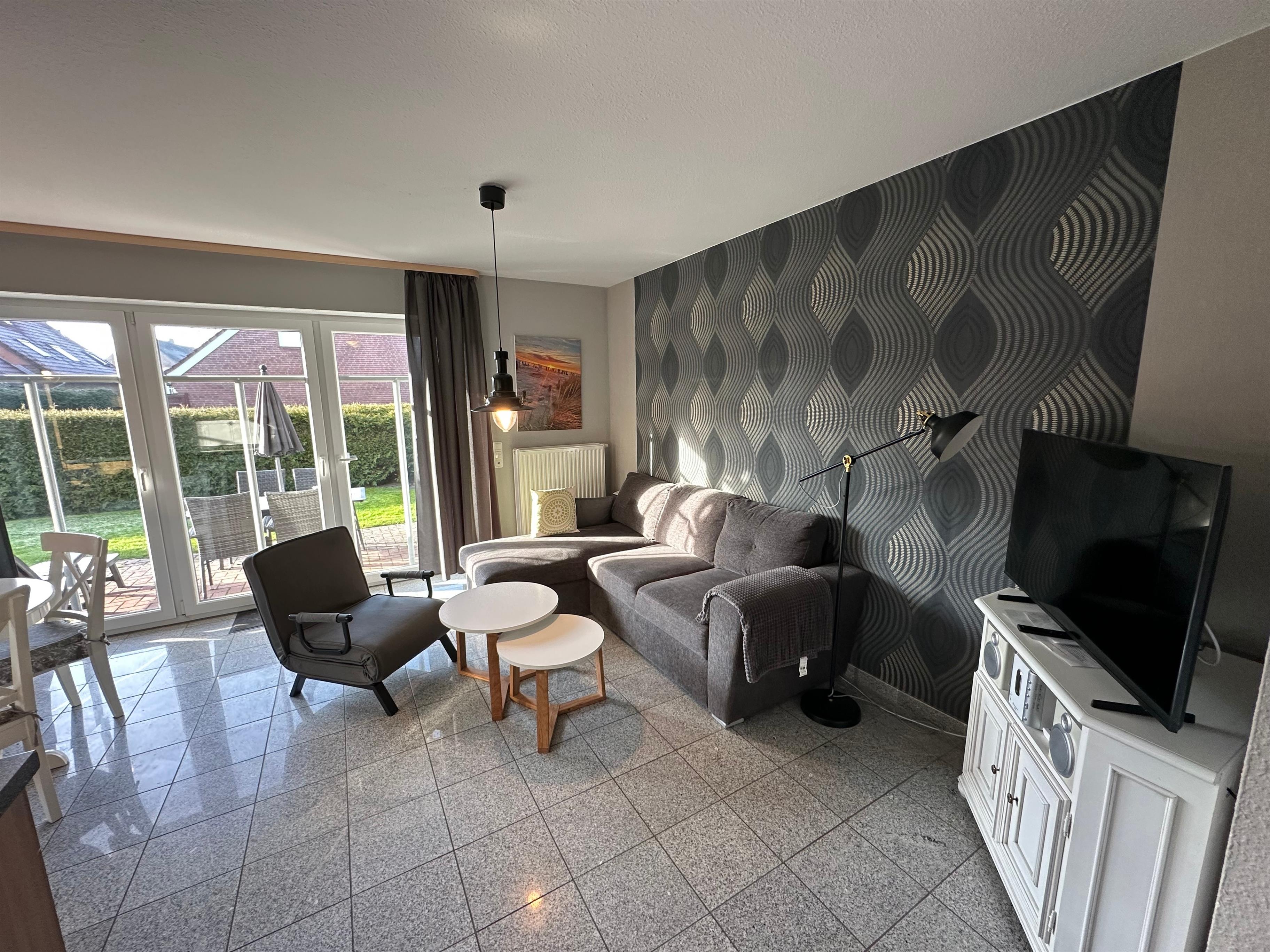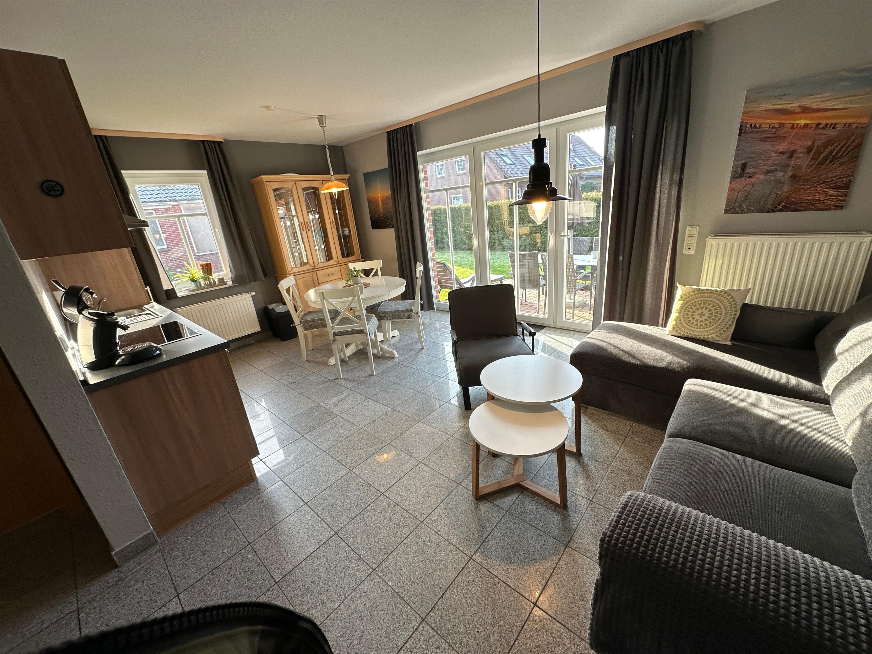 Moderne Ferienwohnung in Norddeich, 10 Gehminuten vom Deich und Hafen entfernt, ideal für Strandurlaub und Freizeitaktivitäten.