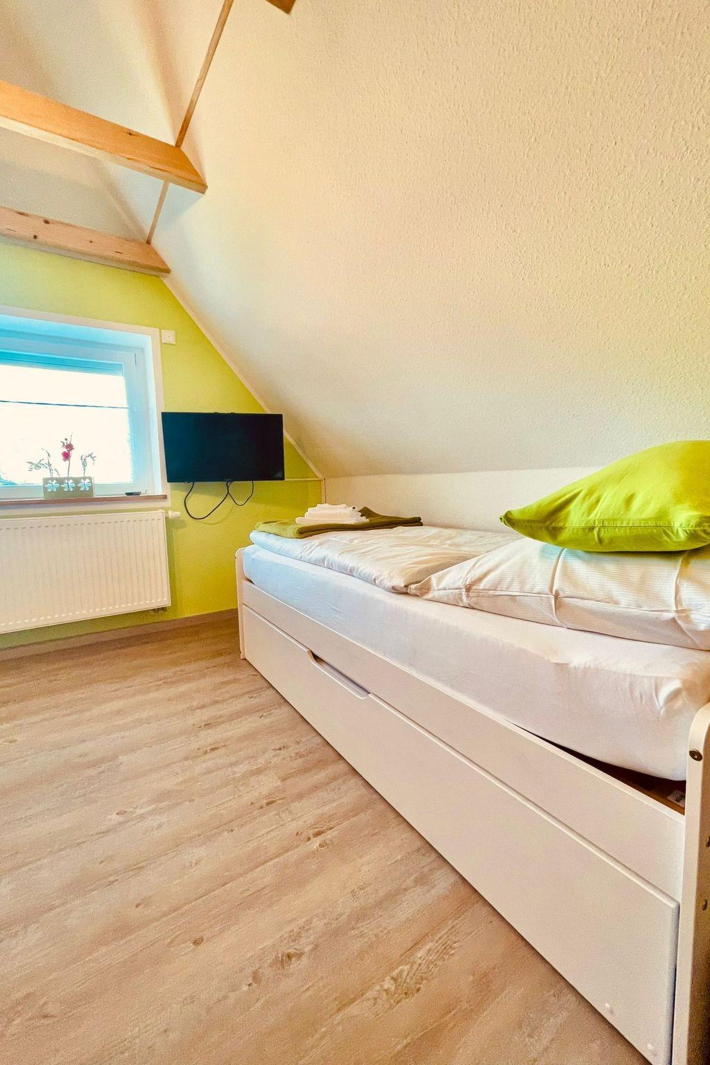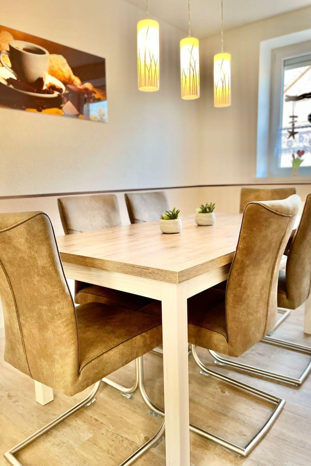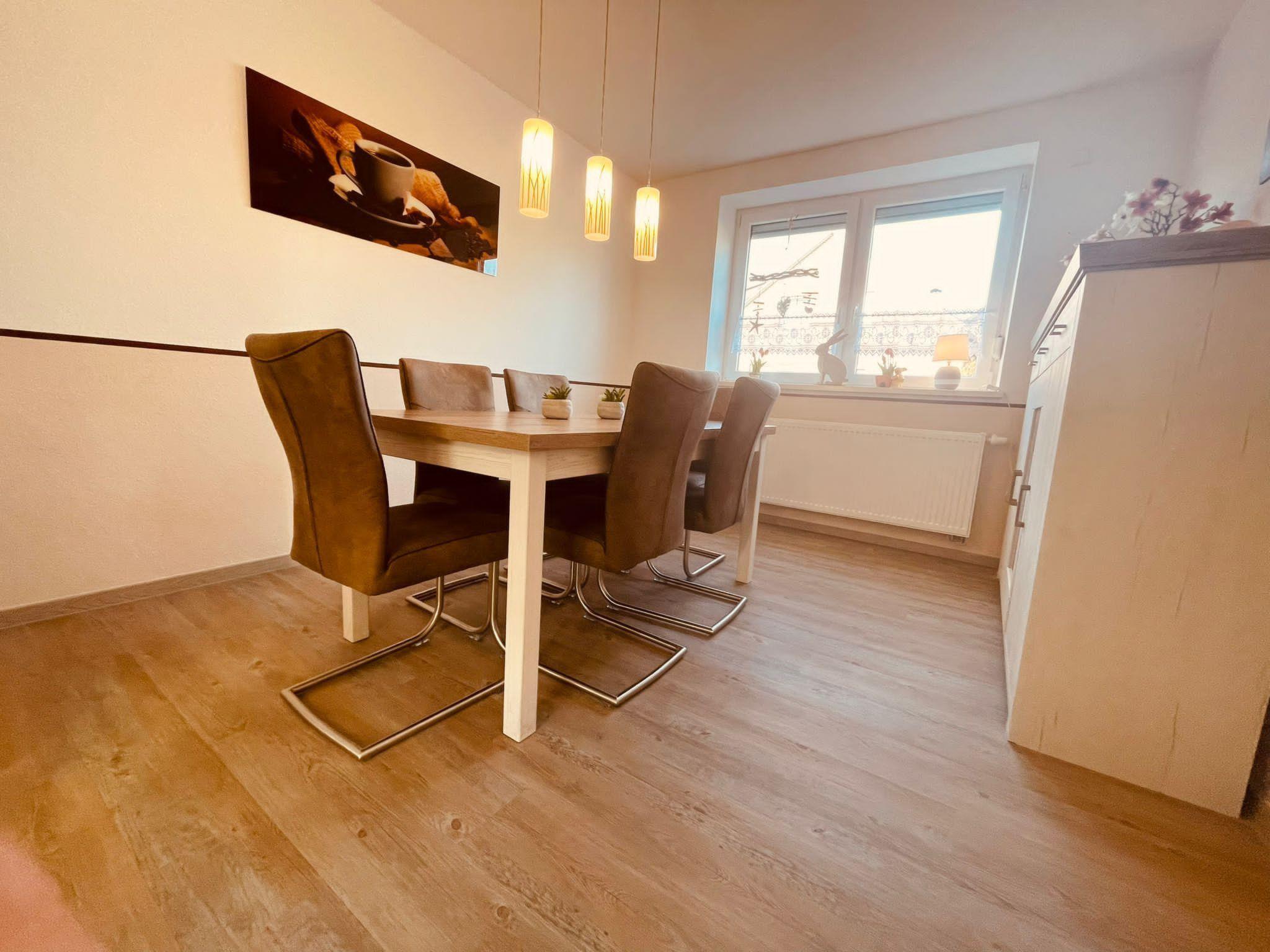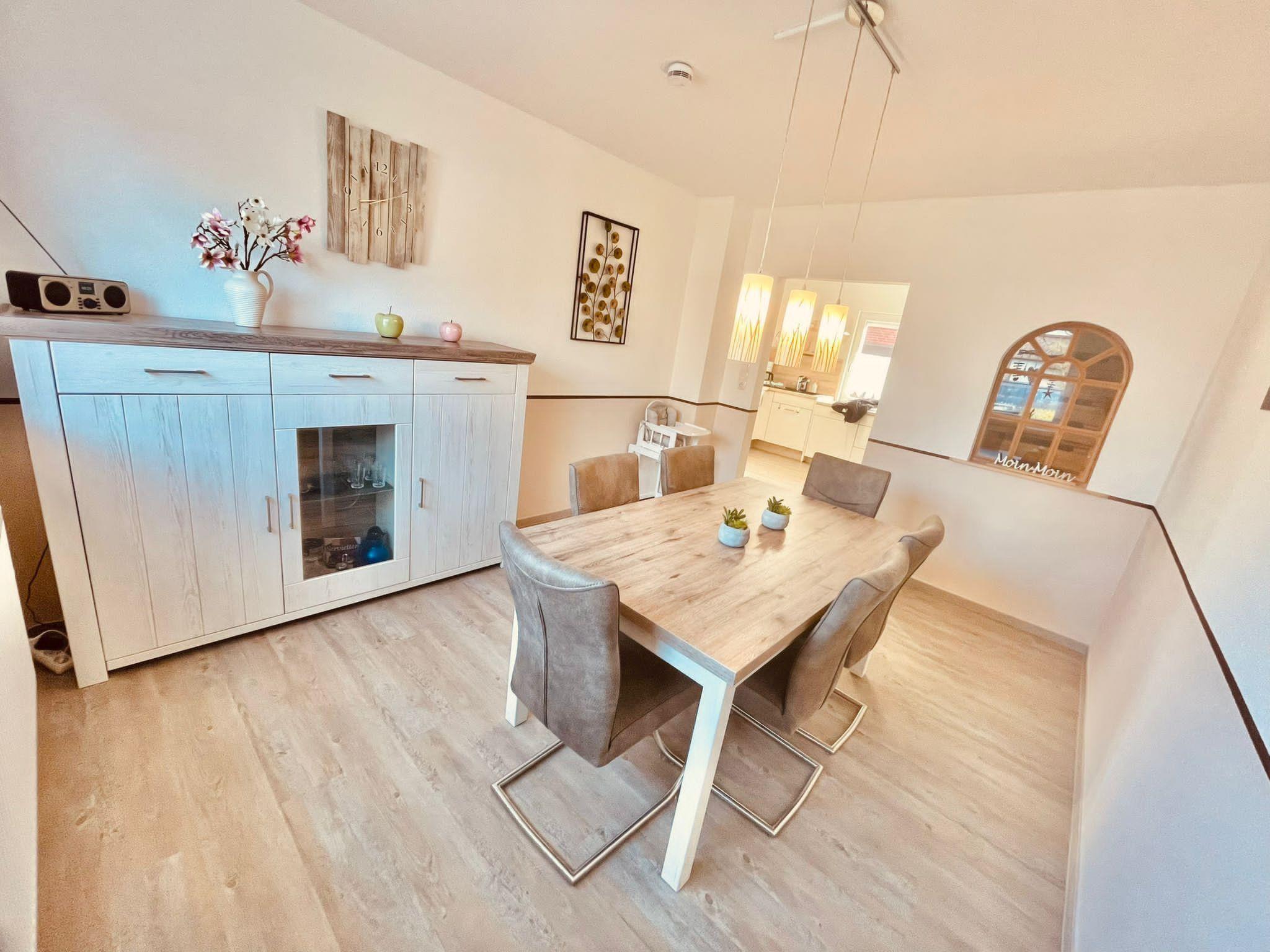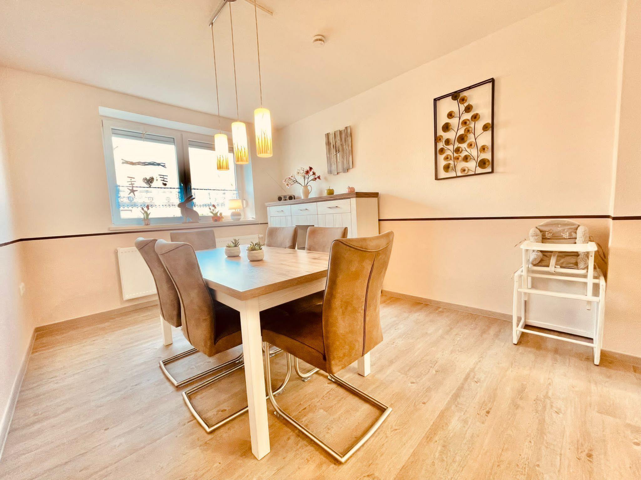 Moin und herzlich willkommen in unserem geschmackvoll und modern eingerichteten Ferienhaus „ Moi Stuuv“. Das freistehende Einfamilienhaus befindet sich in einer absolut ruhigen Lage von Norden und wurde 2020 komplett renoviert. Es bietet für 6 Personen plus Kleinkind Platz. Der Strand und z.B. das Erlebnisbad Ocean Wave können mittels Fahrrad innerhalb kürzester Zeit erreicht werden. Einkaufsmöglichkeiten befinden sich in unmittelbarer Nähe und das Zentrum von Norden kann mit dem Fahrzeug in wenigen Minuten erreicht werden. Im barrierefreien Erdgeschoss befinden sich eine geräumige Diele, Wohnzimmer mit einer 2 Pers.Schlafcouch, Duschbad mit Wickeltisch, 1 Schlafzimmer mit 2 Einzelbetten 0,90 x 2,00 m und geräumigem Kleiderschrank. Die neu eingerichtete Küche ist voll ausgestattet. Beistellbett auf Anfrage.Angrenzend befindet sich das gemütliche Esszimmer mit Kinderhochstuhl. Im Hauswirtschaftsraum stehen eine Waschmaschine und ein Trockner für die Gäste bereit. Ein weiteres großes Schlafzimmer mit einem Doppelbett 1,80 x 2,00 m, einem ausziehbaren Kojenbett 0,90 x 2,00 m für 2 Personen und ein Kleinkinderbett befinden sich im geräumigen Obergeschoß. Ein weiteres Duschbad mit WC ist verfügbar. Verbringen Sie gemütliche Stunden auf der großen Terrasse mit Gartenmöbeln und Grill.