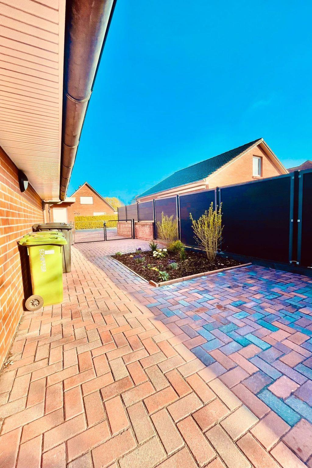 - komplett eingefriedet (mit Mauer, Zaun oder Hecke)