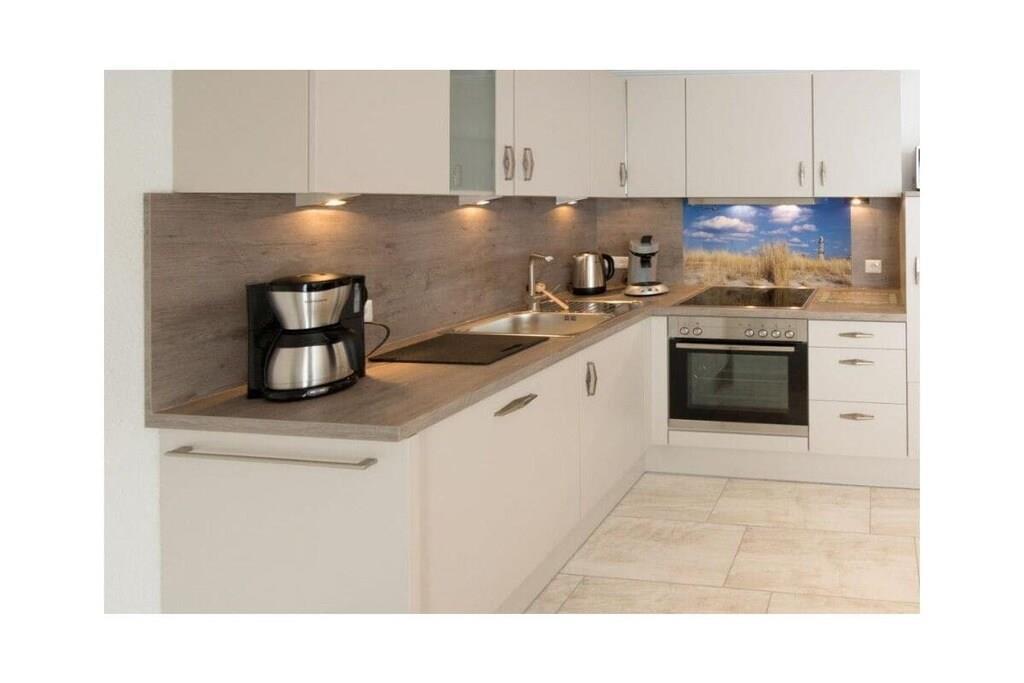 Ferienwohnung Ankerplatz D7 Am Escher 7 Ankerplatz D7 ist eine Ferienwohnung für Gäste, die es auch im Urlaub komfortabel und edel lieben. Erst 2016 fertiggestellt, ist dieses Objekt besonders modern und luxuriös gestaltet. Das Interieur wurde liebevoll und mit sicherem Geschmack ausgewählt. Der maritime Charme ist überall spürbar, wirkt jedoch völlig dezent. Mit dem Doppelzimmer inklusive bequemem elektrisch verstellbarem Boxspringbett und dem Jugendzimmer mit Einzelbett ist die Ferienwohnung Ankerplatz D7 ideal für 2 Personen mit einem Kind ab 5 Jahren. In der großen, gemütlichen Küche kann nach Herzenslust gekocht werden. Dafür stehen Ihnen Annehmlichkeiten wie ein Backofen mit Ceranfeld, ein Kühlschrank mit Gefrierfach, eine Mikrowelle, ein Geschirrspüler, eine Senseo-Kaffeemaschine, eine Filter-Kaffeemaschine, ein Toaster, ein Eierkocher, ein Wasserkocher sowie ein Mixer zur Verfügung. Volles Entertainment erwartet die Gäste im gemütlichen Wohnbereich. Flachbild-TV mit Internetfunktionen wie z.B. Netflix, U-Tube und Mediathek, dazu Blu-Ray DVD-Player und ein CD-Player lassen keine Wünsche offen. Alle Rollläden können elektronisch gesteuert werden. Elektronisch können Sie auch die Fußbodenheizung auf die gewünschte Temperatur einstellen. Zur Ferienwohnung gehört ebenso ein Abstellraum in dem eine kostenfrei nutzbare Waschmaschine, ein Staubsauger, Kehrblech & Besen, Wäscheständer mit Wäscheklammern, Bügelbrett sowie Bügeleisen untergebracht sind. Im Aussenbereich befindet sich ein Abstellraum hier können die Fahrräder gesichert abgestellt werden. Für den sorgenfreien Start in den Urlaub buchen Sie unser Wäschepaket. Dieses besteht aus Bettwäsche, Handtüchern sowie Duschvorleger, Geschirrhandtüchern und einem Serviceset (Toi-Papier, Spülmaschinentabs, Müllbeutel, Spülbürste, Putzlappen und sonstigen kleinen Helfern) für den sorglosen Start Ihres Urlaubes.