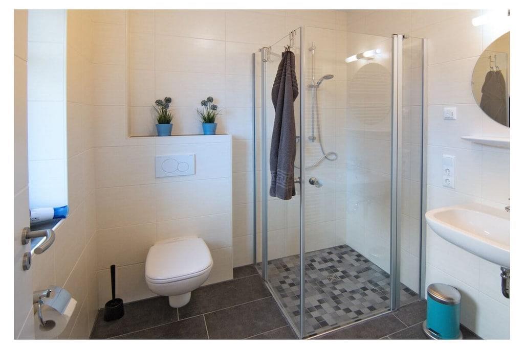 Parterre: (Wohnzimmer(Schlafcouch 1 Pers., TV, Radio, ), Küche(Kochplatte, Wasserkocher, Toaster, Kaffeemaschine, Backofen, Mikrowelle, Spülmaschine, Kühlschrank, Tiefkühlschrank, Hochstuhl, ), Schlafzimmer(Doppelbett, Kinderbett), Schlafzimmer(Einzelbett, Doppelbett), Schlafzimmer(Einzelbett, Doppelbett), Badezimmer(Dusche), Badezimmer(Dusche)) , , Abstellraum, Internet, Internet, Waschmaschine, Terrasse, Garten(Liegewiese, Gartenmöbel), Bügeleisen, Trockenschrank