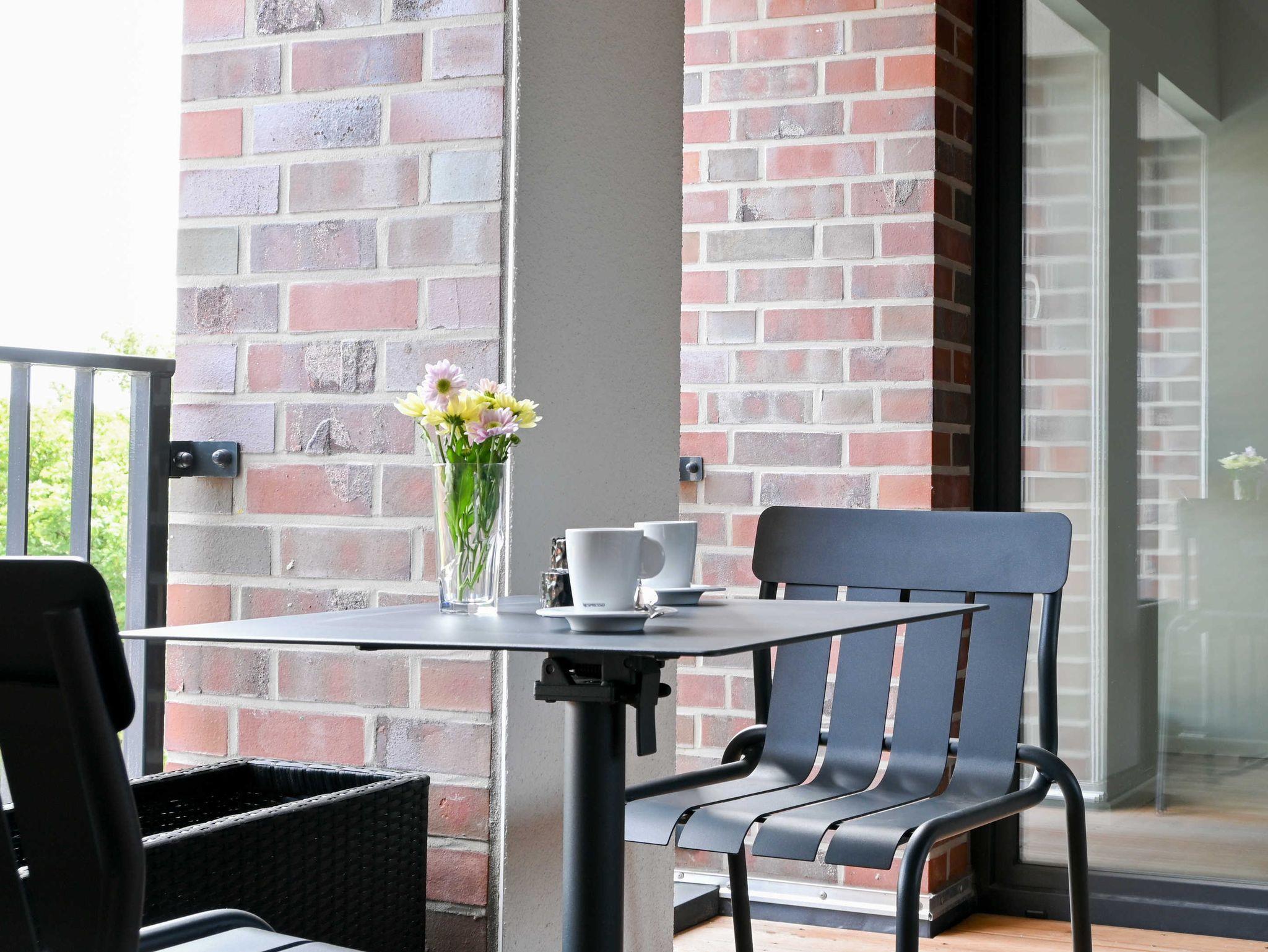 Modernes, gemütliches Apartment in Norden nahe Nordsee, ideal für bis zu drei Personen mit Balkon und barrierefreiem Bad.