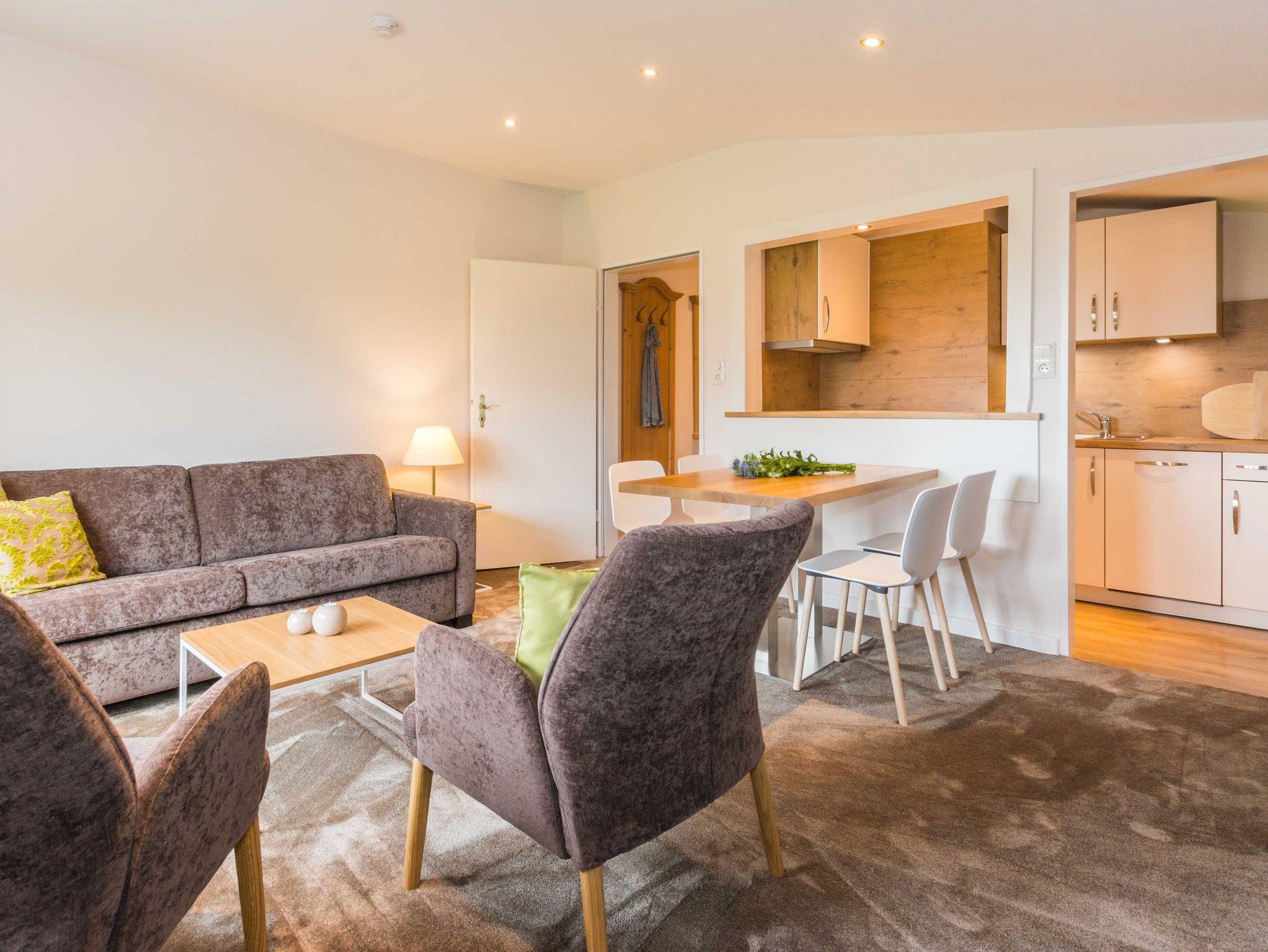 Es verfüget über ein Schlafzimmer, ein Wohnzimmer (mit der Möglichkeit zur Aufbettung), ein Badezimmer sowie eine Küche bzw. Küchenzeile.