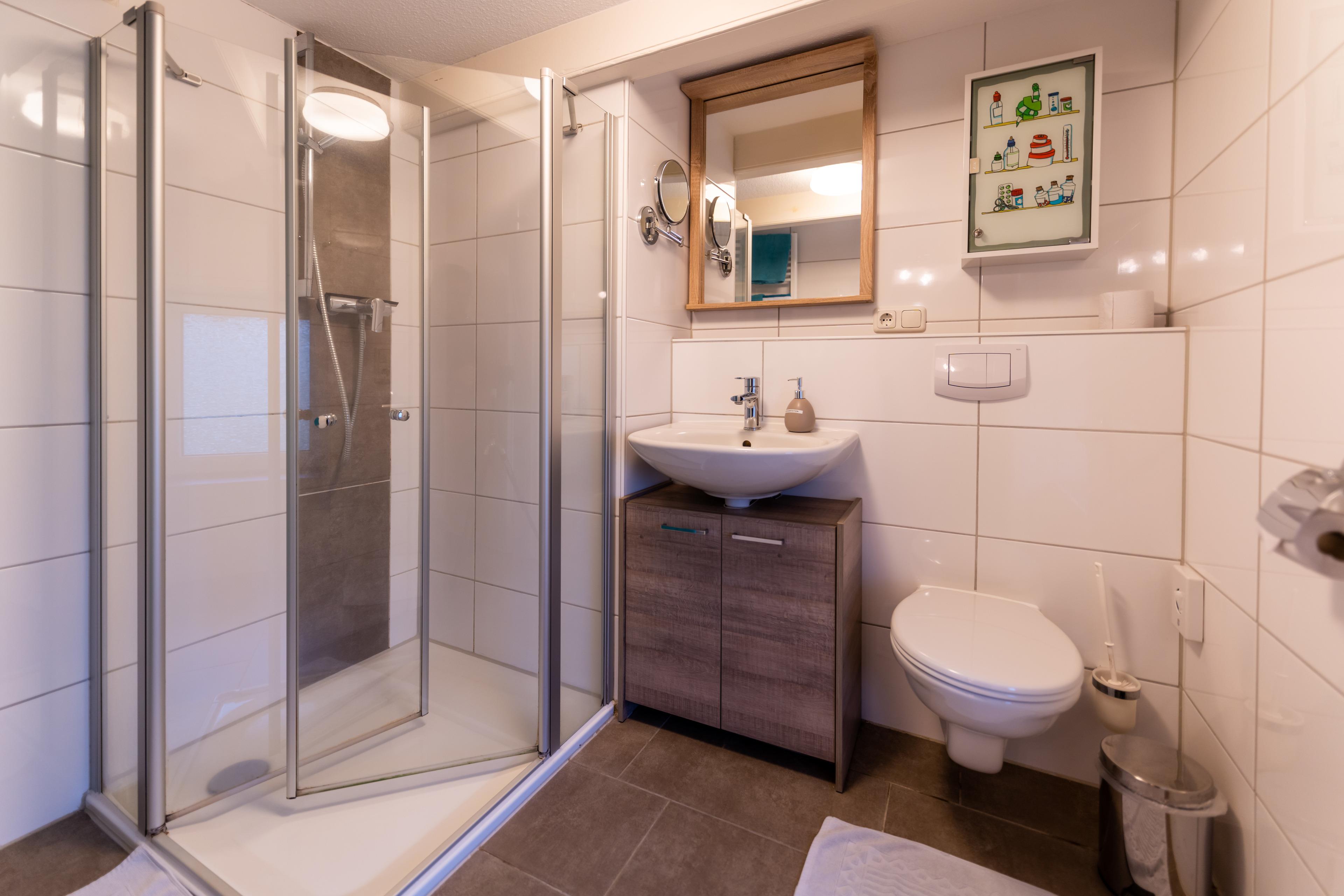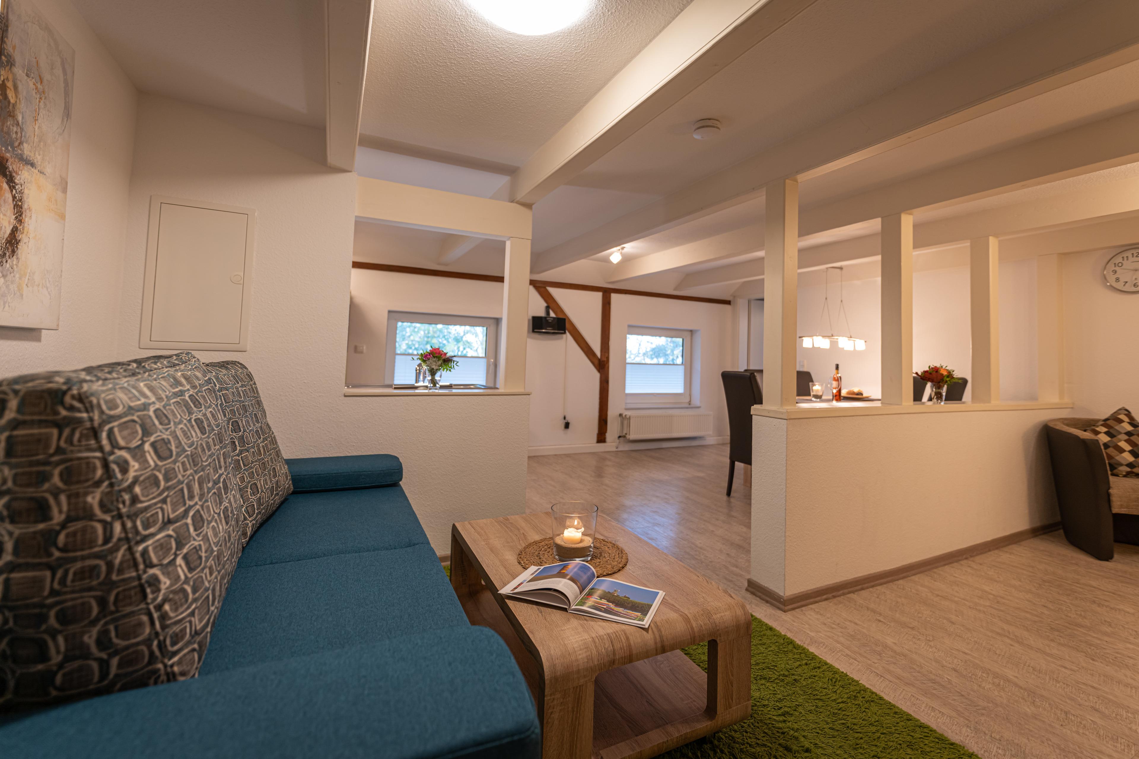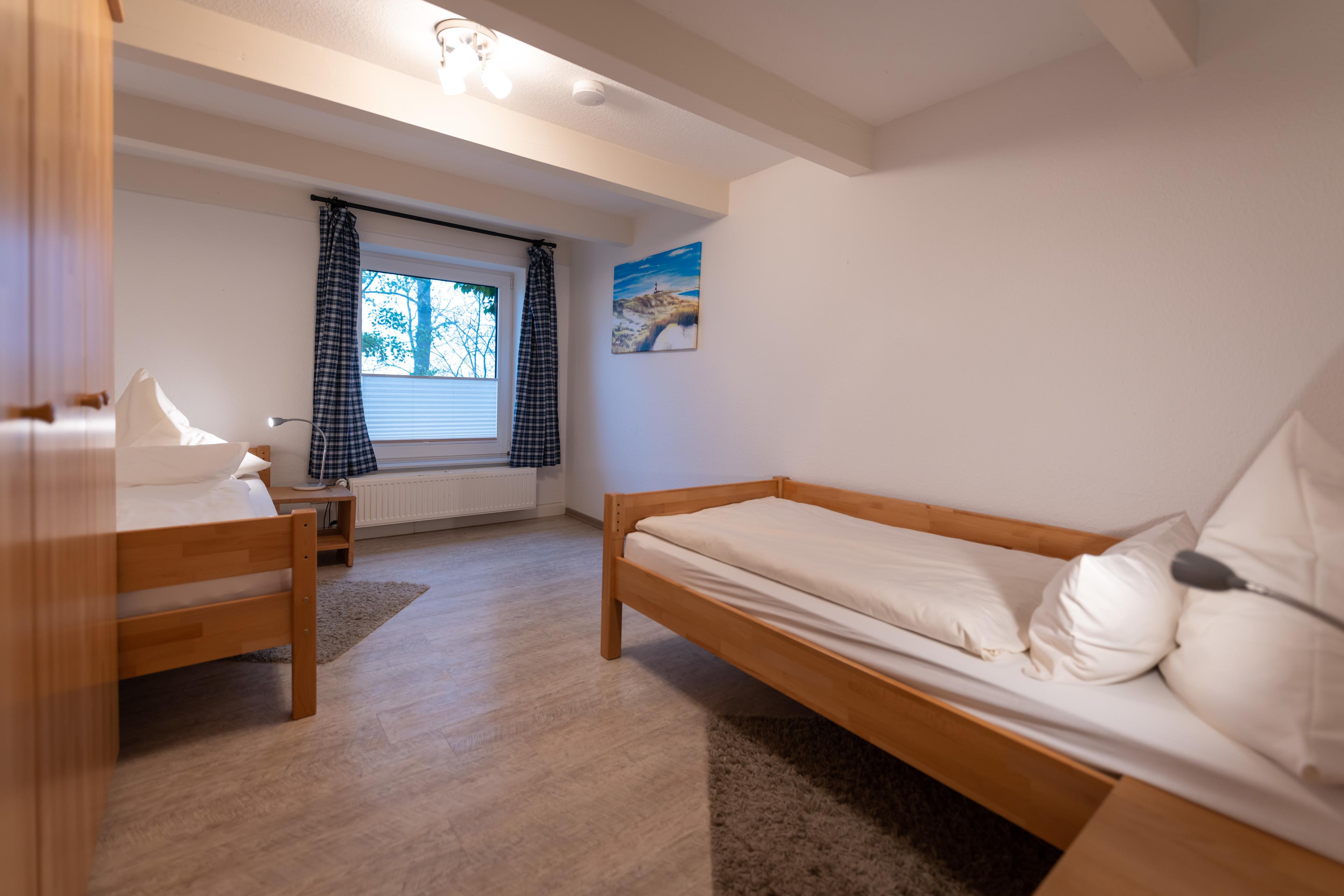 Unsere Ferienwohnung 2 mit einer Größe von 67 m² befindet sich in der ersten Etage unseres Wohnhauses und verfügt über zwei Schlafzimmer - eines mit Doppelbett; eines mit zwei Einzelbetten - sowie ein vollausgestattetes Badezimmer. Im Hauptschlafzimmer besteht die Möglichkeit, ein weiteres Einzelbett hinzu zu stellen. Der Wohn-, Ess- und Küchenbereich besticht durch seine offene Raumgestaltung. Wie all unserer Wohnungen ist auch diese Wohnung freundlich, hell und modern eingerichtet und ausgestattet.