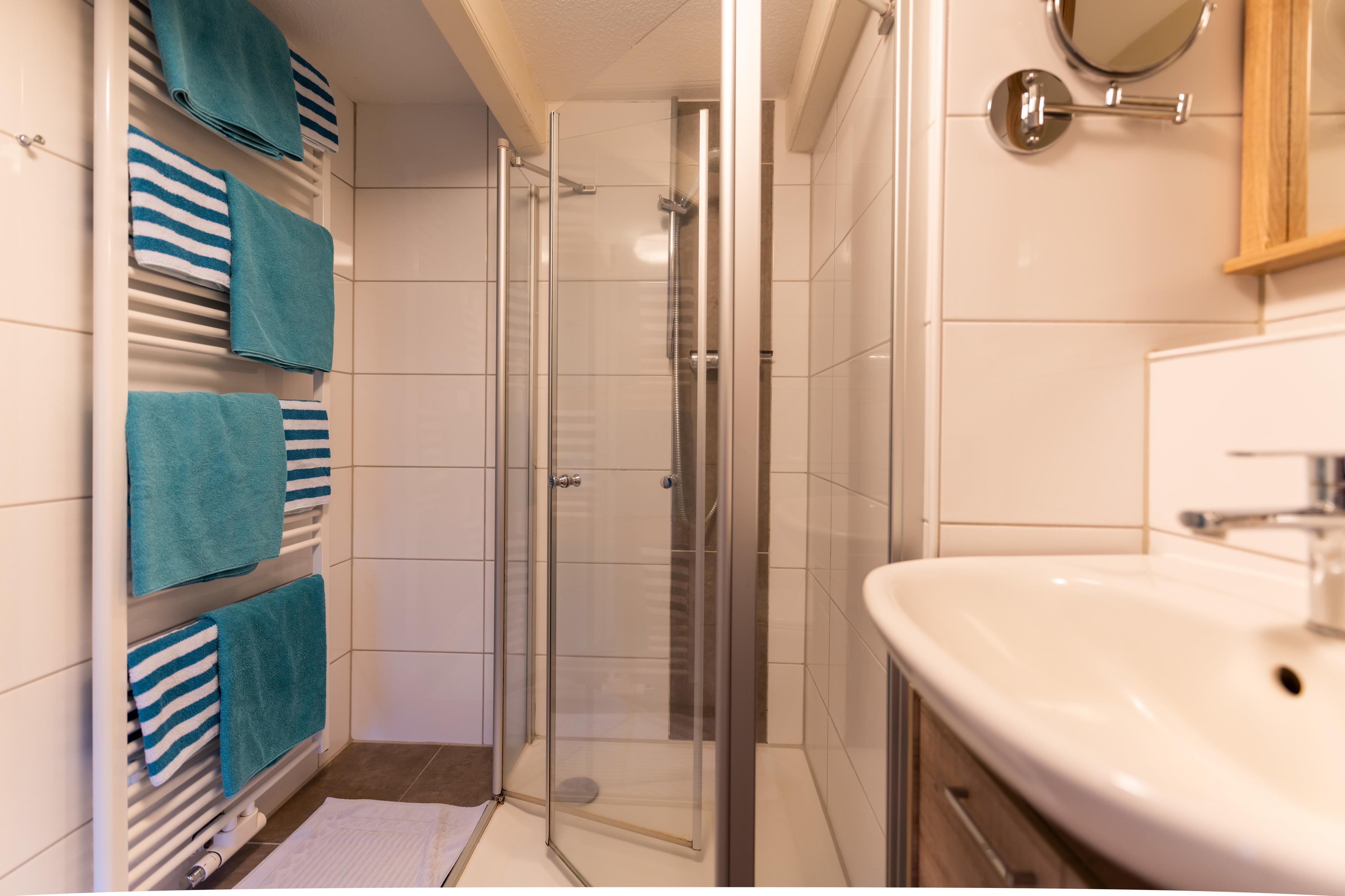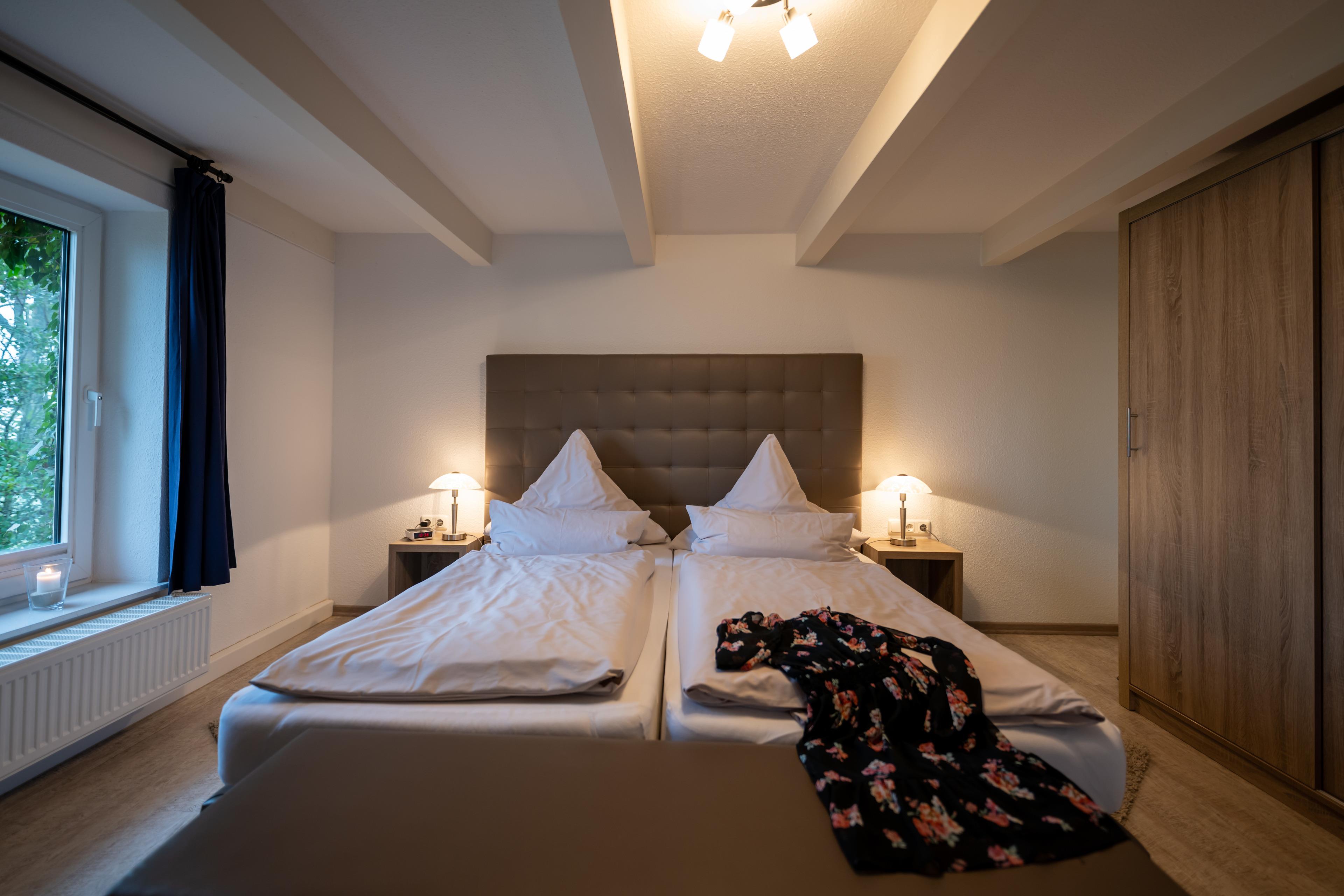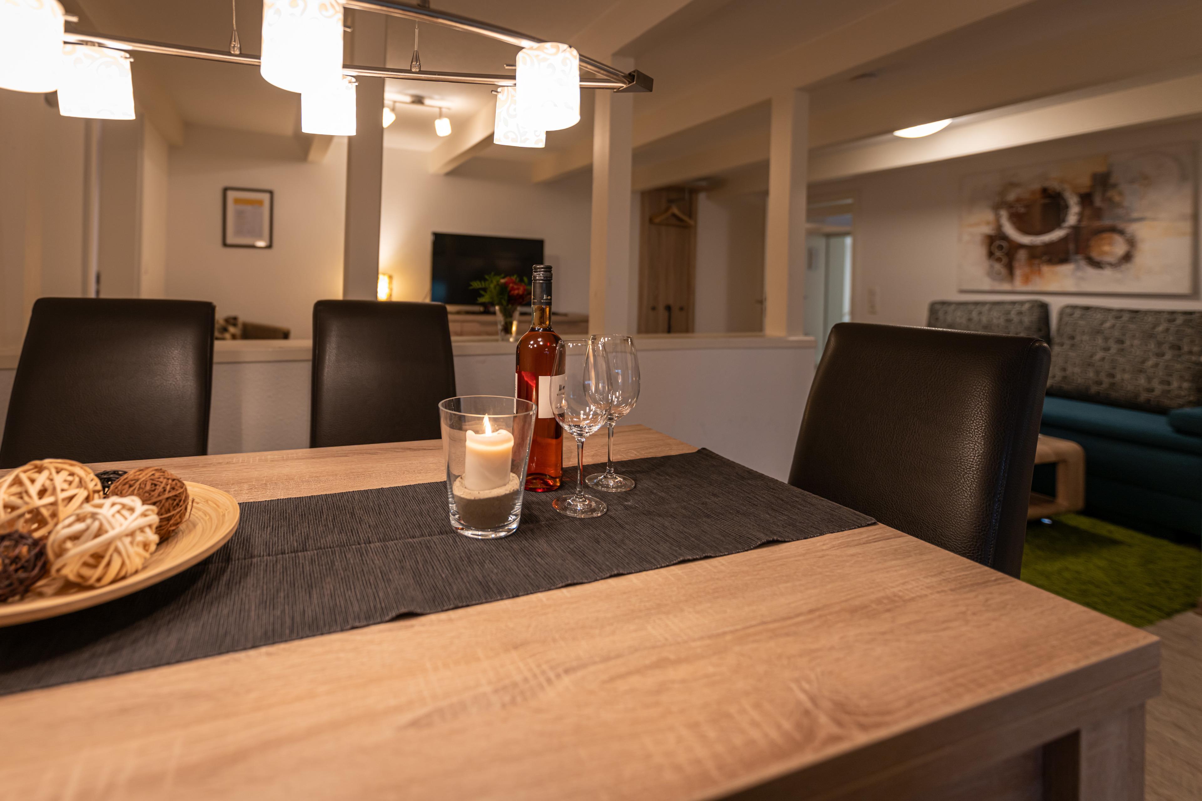 Unsere Ferienwohnung 2 mit einer Größe von 67 m² befindet sich in der ersten Etage unseres Wohnhauses und verfügt über zwei Schlafzimmer - eines mit Doppelbett; eines mit zwei Einzelbetten - sowie ein vollausgestattetes Badezimmer. Im Hauptschlafzimmer besteht die Möglichkeit, ein weiteres Einzelbett hinzu zu stellen. Der Wohn-, Ess- und Küchenbereich besticht durch seine offene Raumgestaltung. Wie all unserer Wohnungen ist auch diese Wohnung freundlich, hell und modern eingerichtet und ausgestattet.