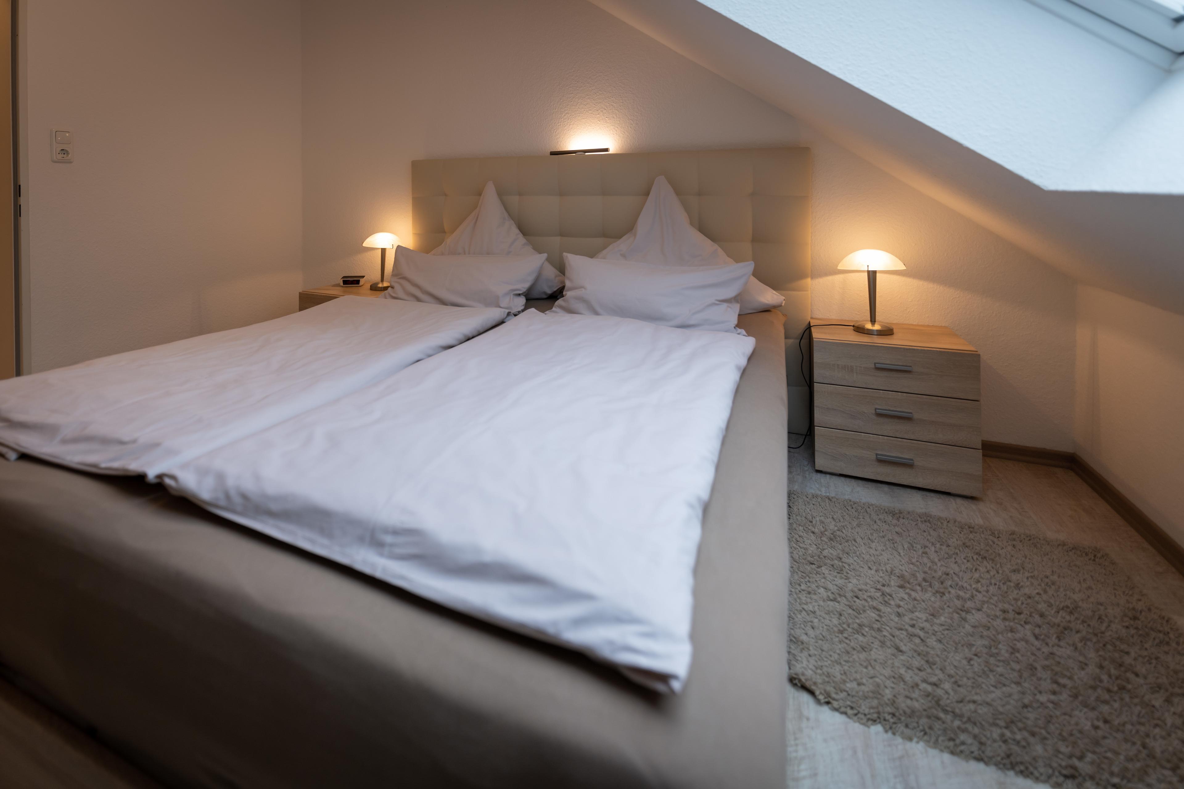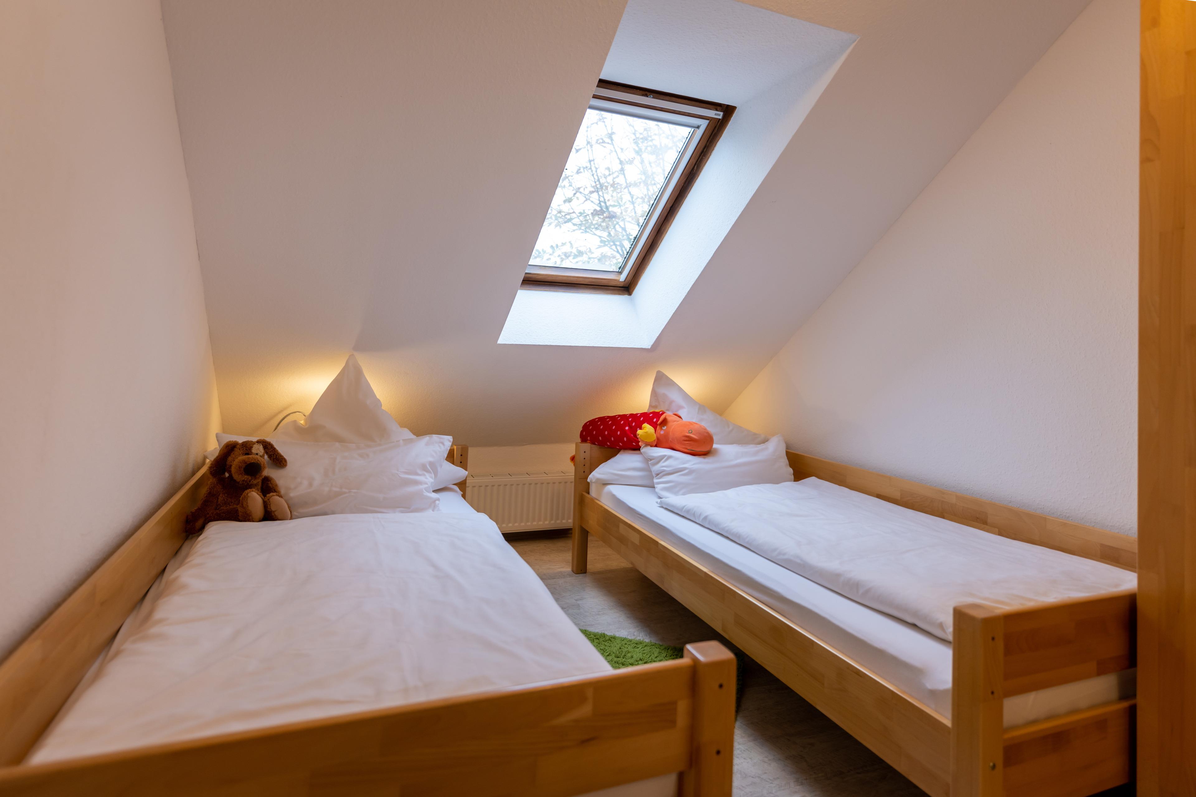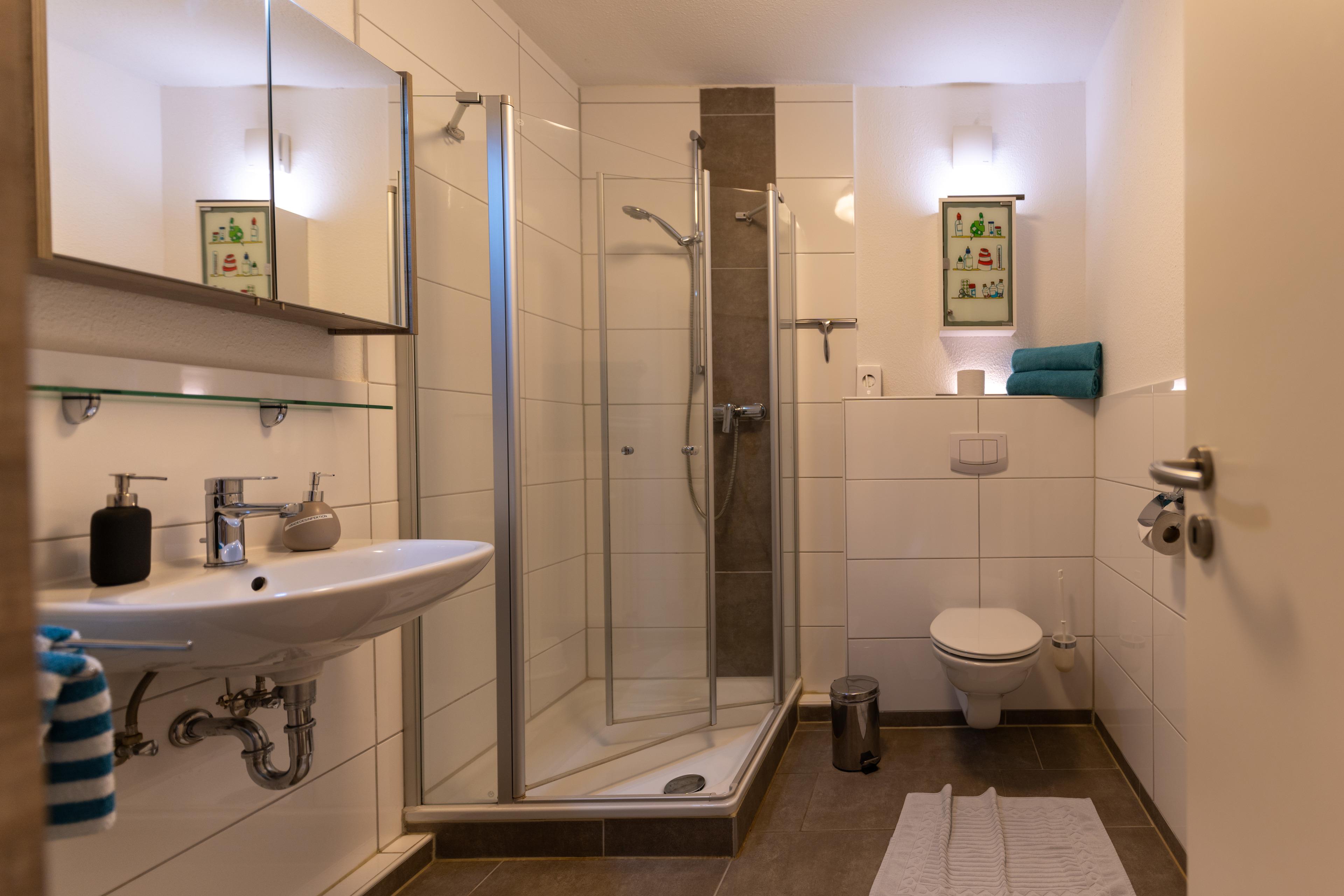 Unsere Wohnung 4 befindet sich in der 1. Etage unseres Wohnhauses und ist 50 m² groß. Hier finden Sie zwei Schlafzimmer - eines mit Doppelbett und eines mit zwei Einzelbetten - sowie einen großzügig geschnittenen Wohnbereich und eine modern ausgestattete Küche. Das moderne vollausgestattete Badezimmer rundet diese haustierfreie Wohnung ab.