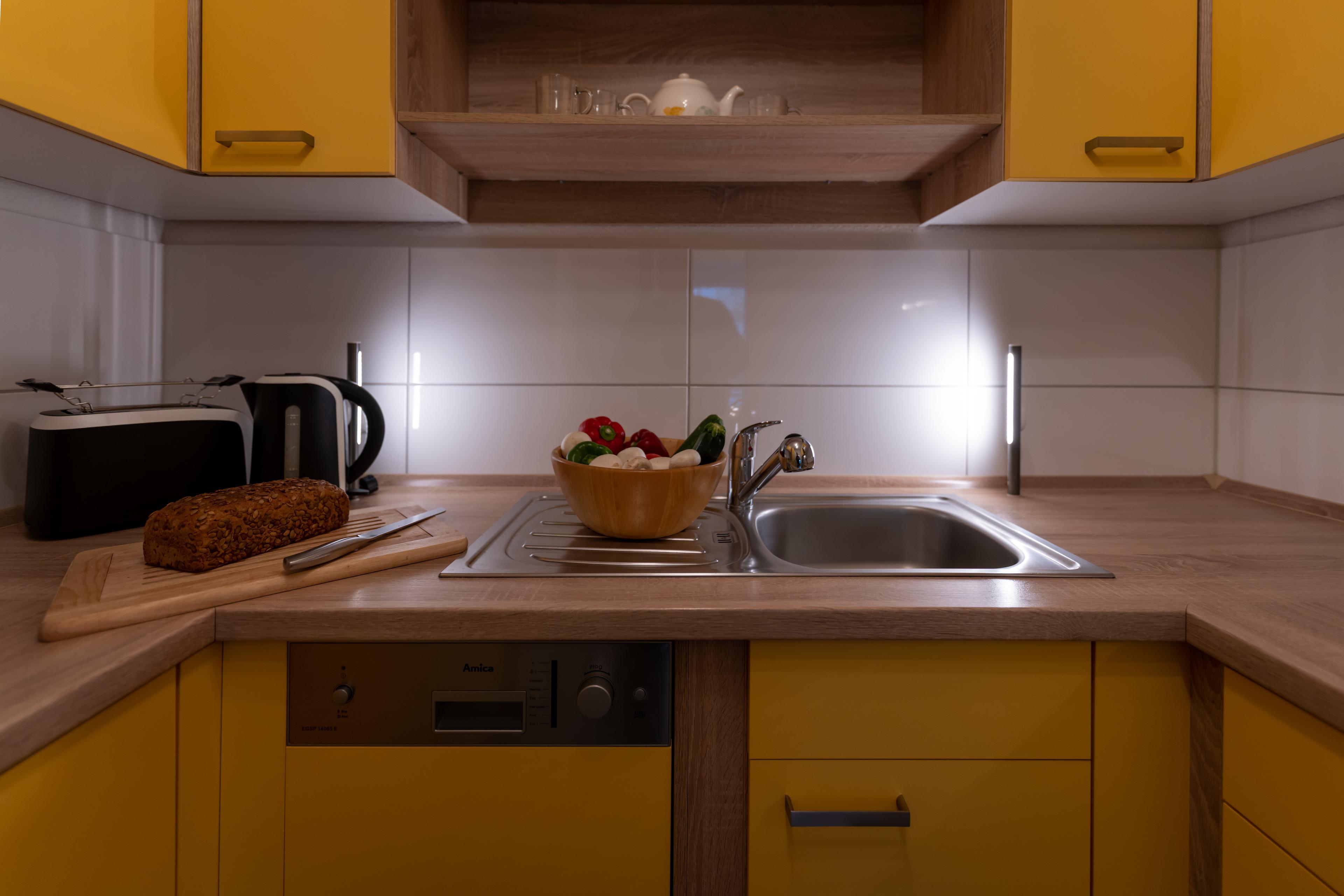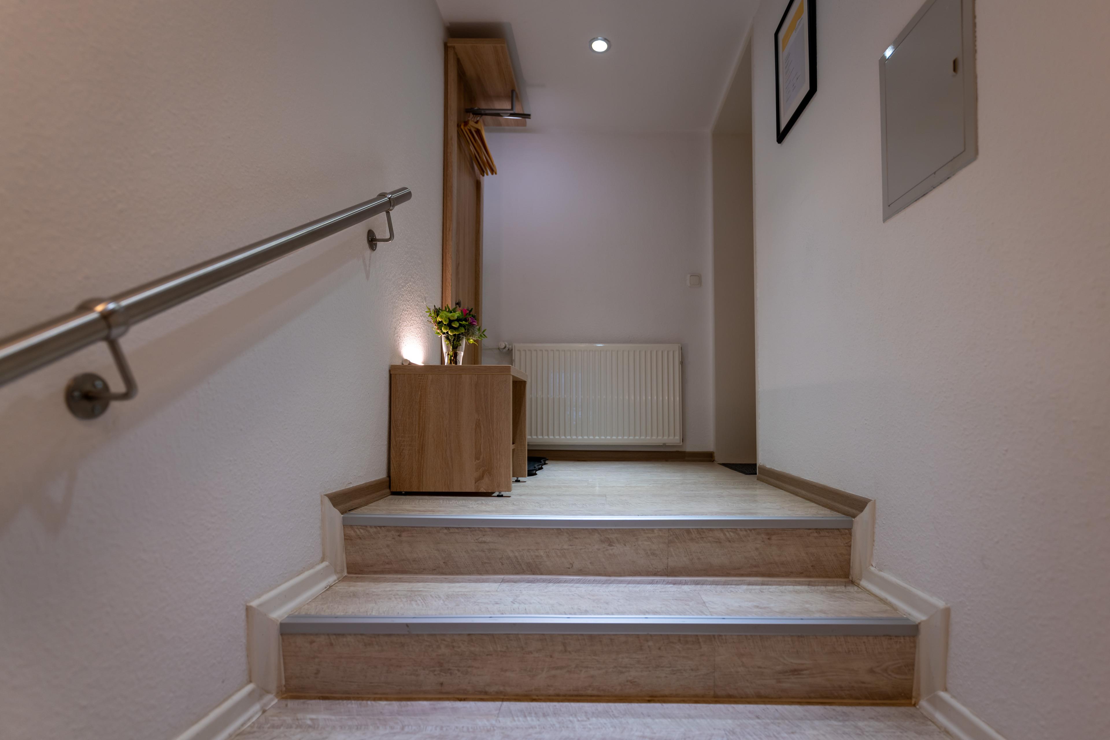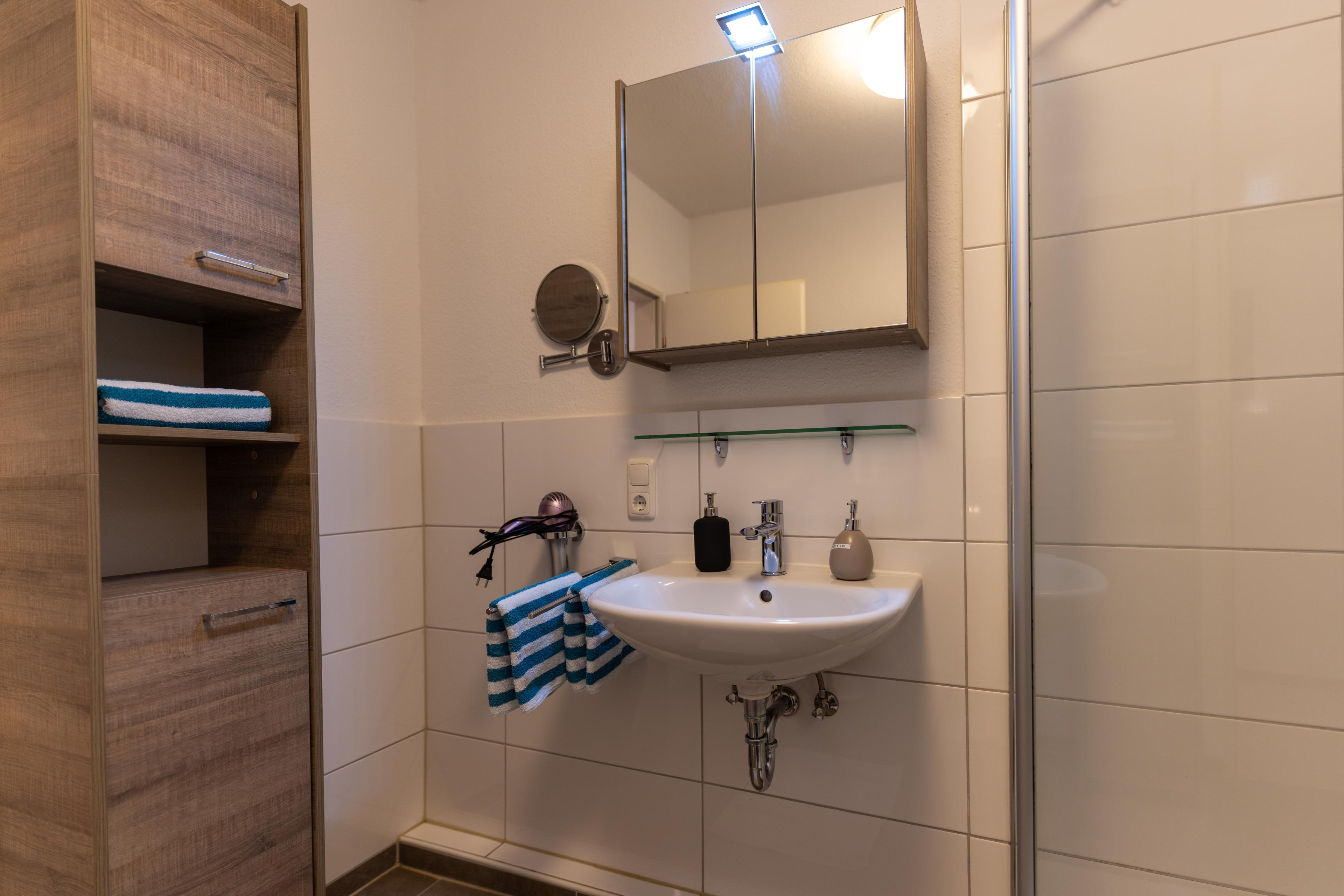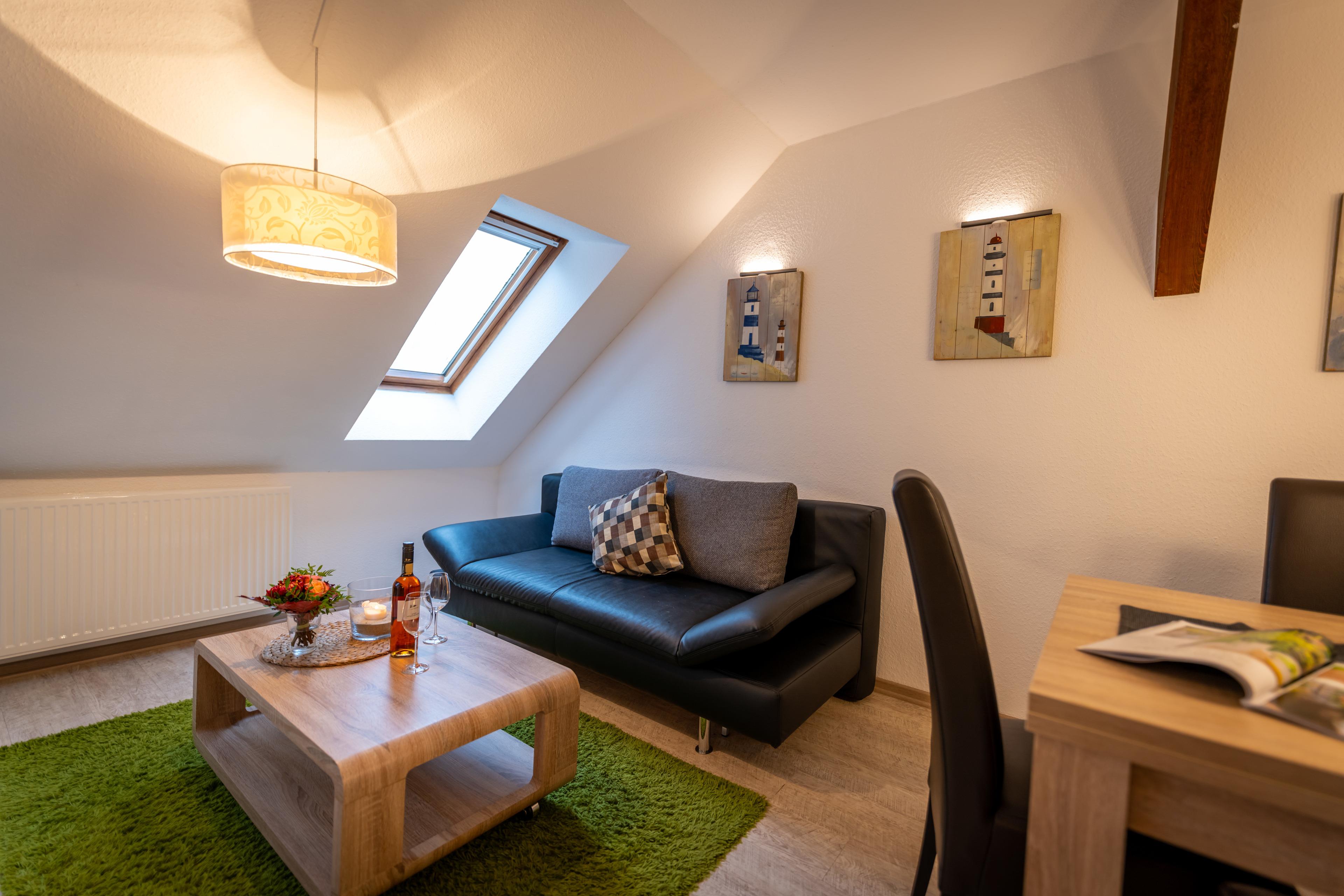 Unsere Wohnung 4 befindet sich in der 1. Etage unseres Wohnhauses und ist 50 m² groß. Hier finden Sie zwei Schlafzimmer - eines mit Doppelbett und eines mit zwei Einzelbetten - sowie einen großzügig geschnittenen Wohnbereich und eine modern ausgestattete Küche. Das moderne vollausgestattete Badezimmer rundet diese haustierfreie Wohnung ab.