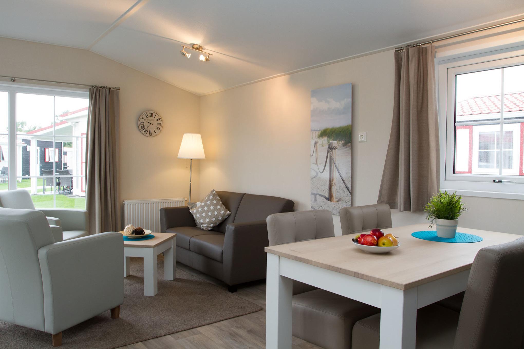 Ferienhaus mit rd. 45m² und Platz für bis zu vier Personen. 2 Schlafzimmer davon 1 mal mit Doppelbett und TV und 1 mal mit zwei Einzelbetten, 1 Badezimmer. Großer Wohnraum mit Küche, Sitzgelegenheiten und Unterhaltungsmedien (TV). Im Außenbereich gibt es einen Stellplatz für Ihr Auto und die Terrasse lädt zum gemütlichen Verweilen ein. Die Chalets befinden sich in einem eigenen Parkareal unseres Platzes mit eigener Zufahrt.