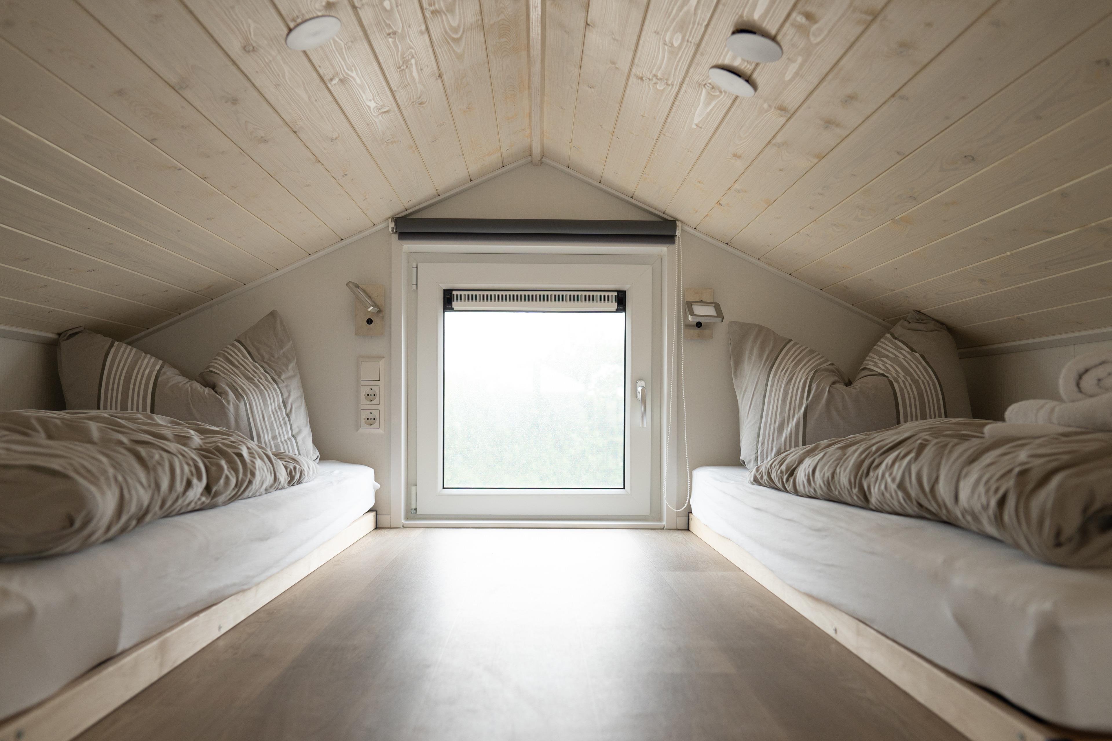 Ferienhaus mit rd. 29m² und Platz für bis zu vier Personen. Ein Schlafzimmer mit Boxspringbetten, zwei weitere Schlafmöglichkeiten finden Sie im Wohn- und Schlafbereich. Großer Wohnraum mit Küche, Sitzgelegenheiten und Unterhaltungsmedien (TV), dazu ein Badezimmer. Im Außenbereich gibt es einen Parkplatz für Ihr Auto und die Terrasse lädt zum gemütlichen Verweilen ein. Die Chalets befinden sich in einem eigenen Parkareal unseres Platzes mit eigener Zufahrt über den Campingplatz.