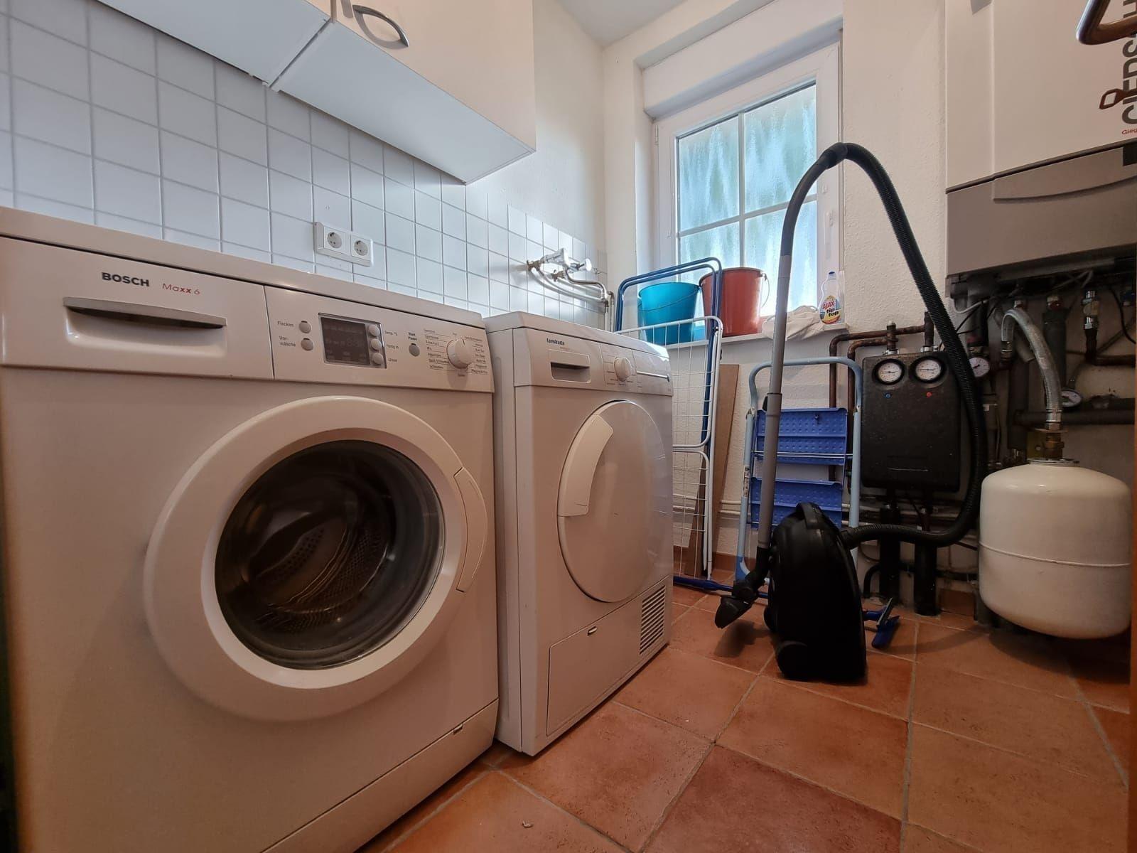 Die separate Küche ist perfekt für die Zubereitung von Mahlzeiten und bietet einen Geschirrspüler, Elektro-/Gasherd, Backofen sowie alle wichtigen Küchenutensilien wie Kaffeemaschine, Mikrowelle und Toaster. Ein Esstisch lädt zur gemeinsamen Mahlzeit ein.