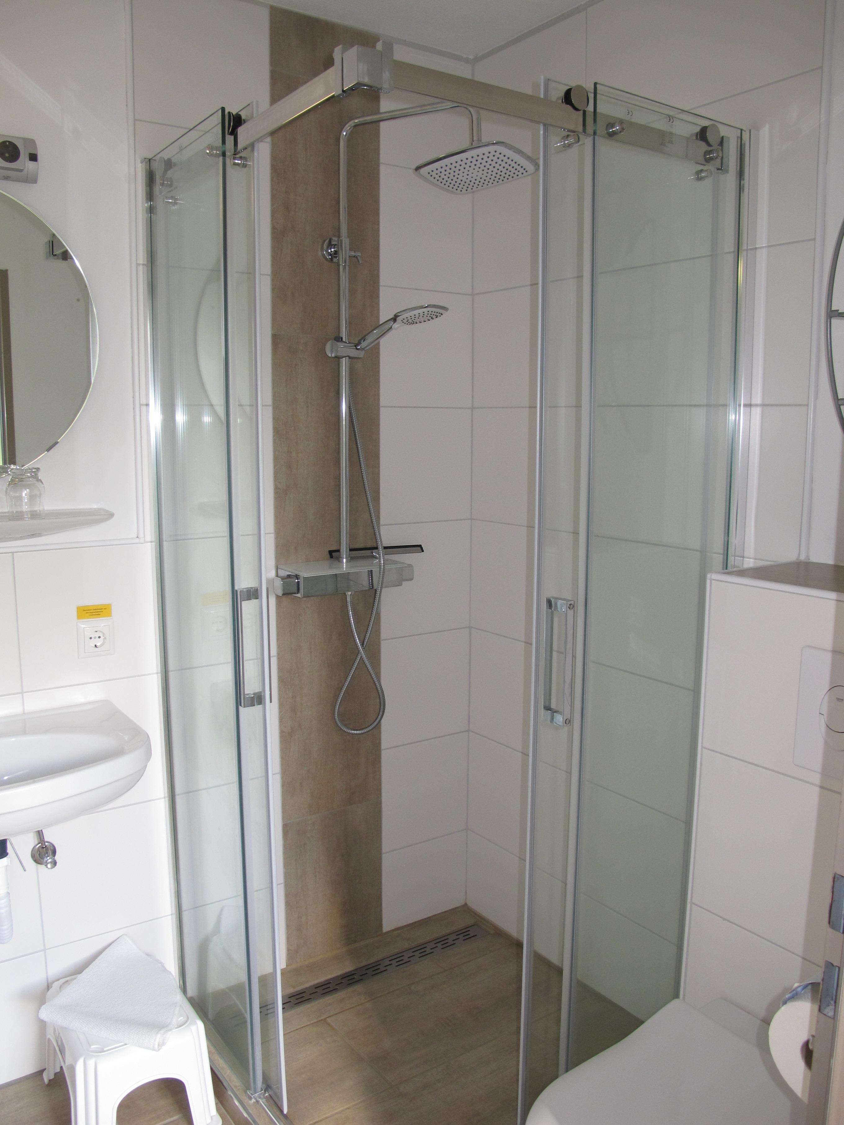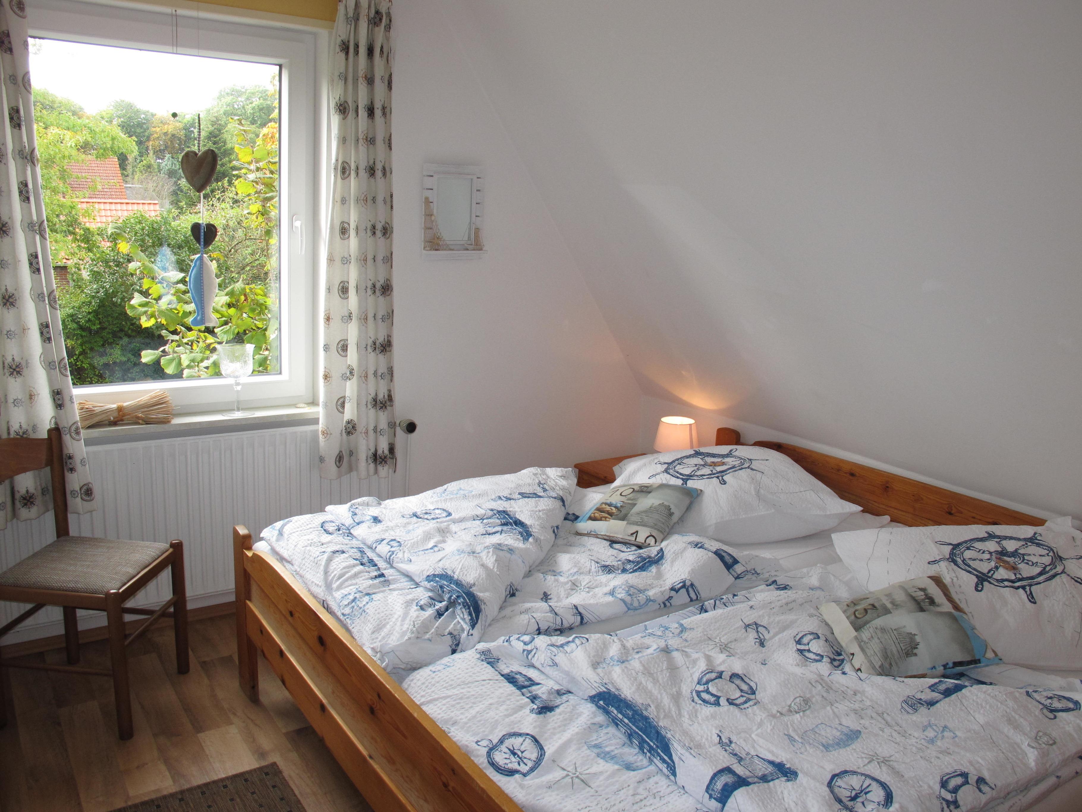 Zugang übers Treppenhaus in die 1. Etage. Separater Zugang in Flur mit Garderobe. Wohnraum mit Sitzgruppe, Eßplatz und einer offenen Küche mit Einbauherd (4 Platten, Backofen), Mikrowelle, Toaster, Kaffeemaschine, Wasserkocher und Kühlschrank. Doppelzimmer. Zweibettzimmer. In 2024 umfassend renovierte Dusche/WC. NICHTRAUCHEROBJEKT