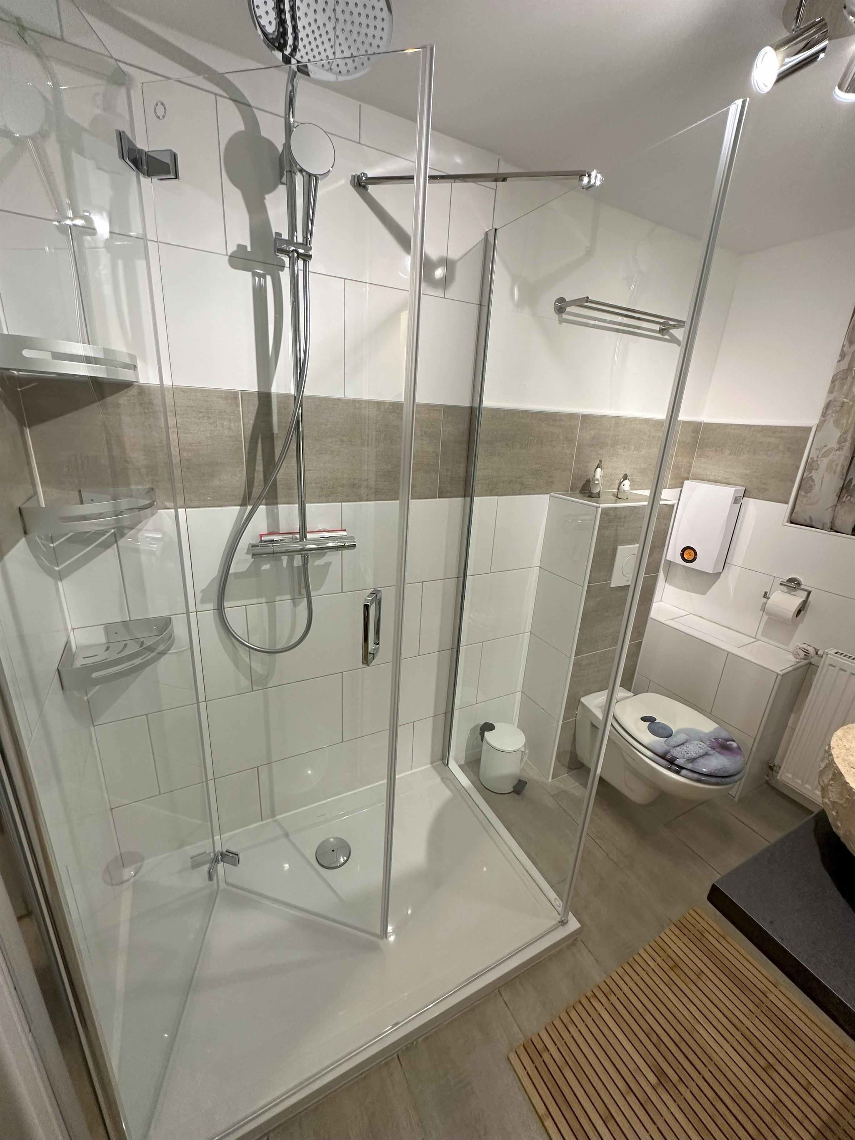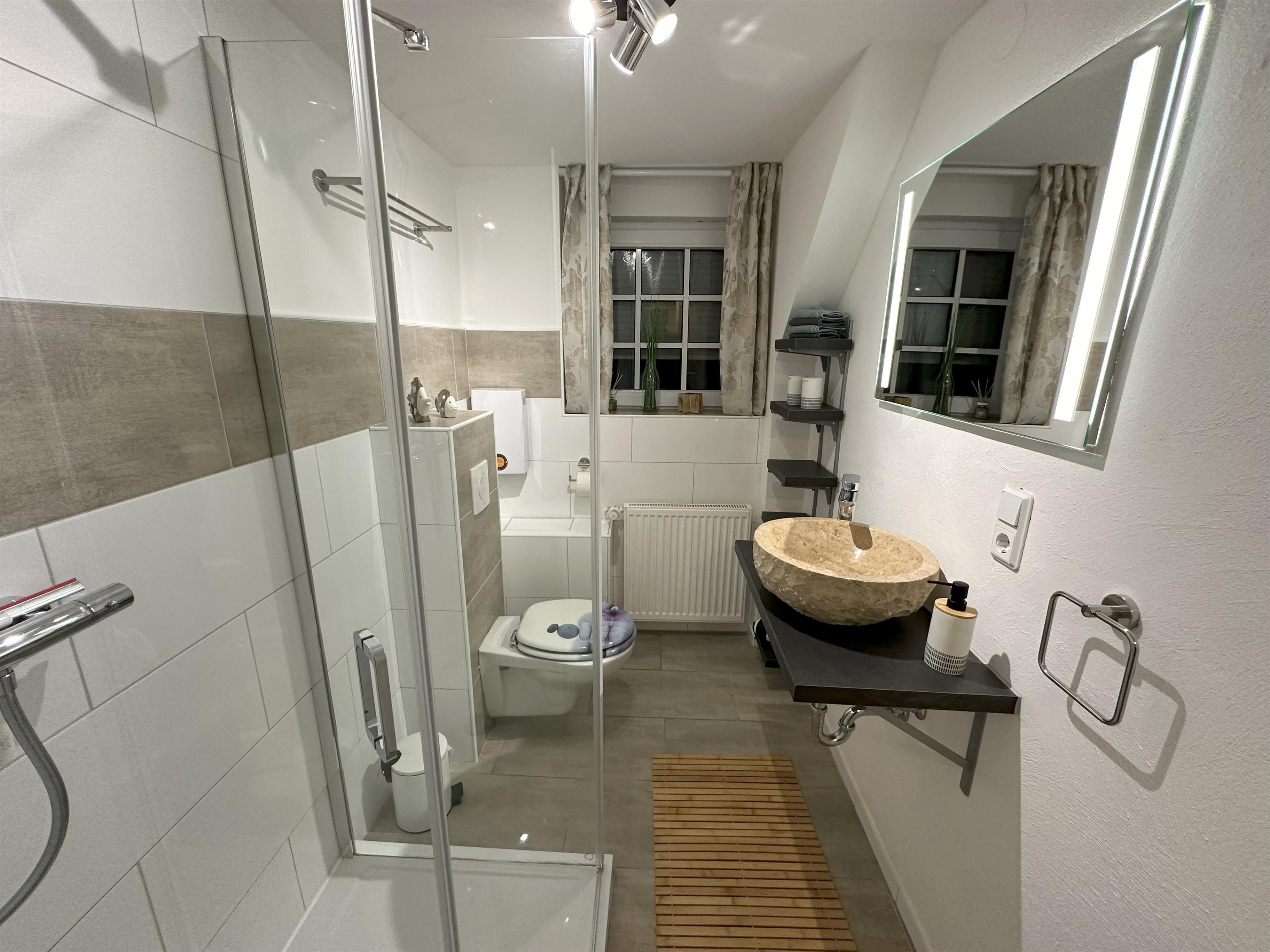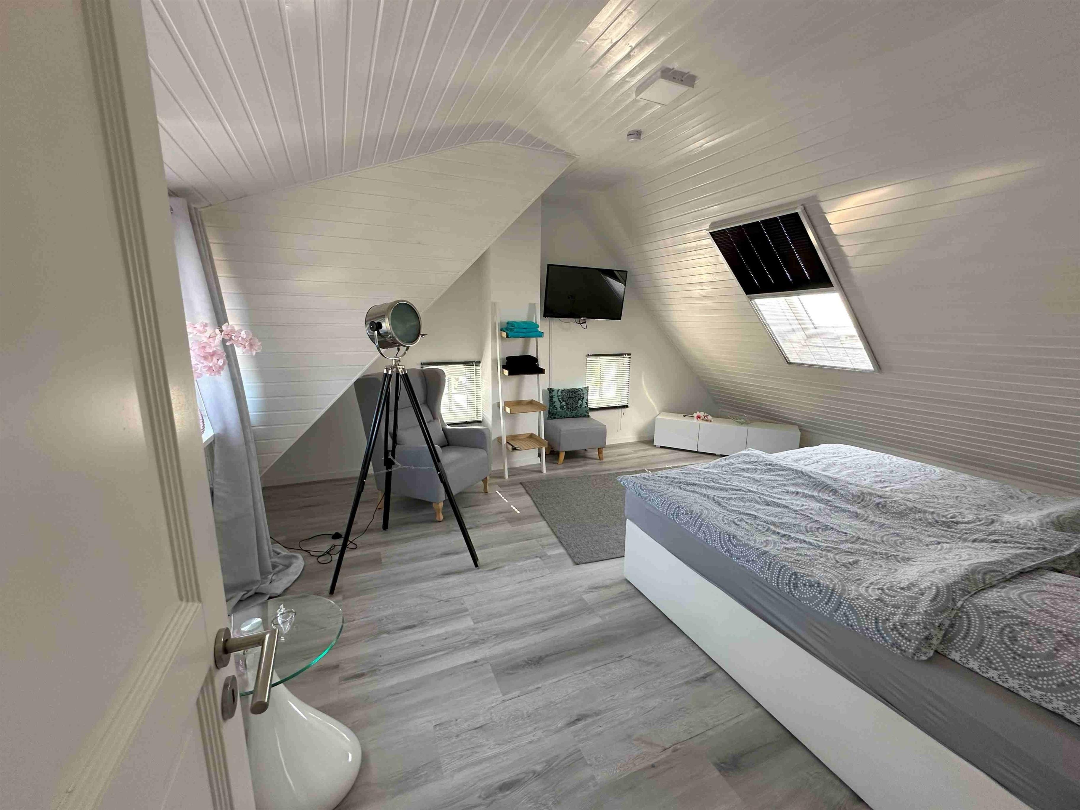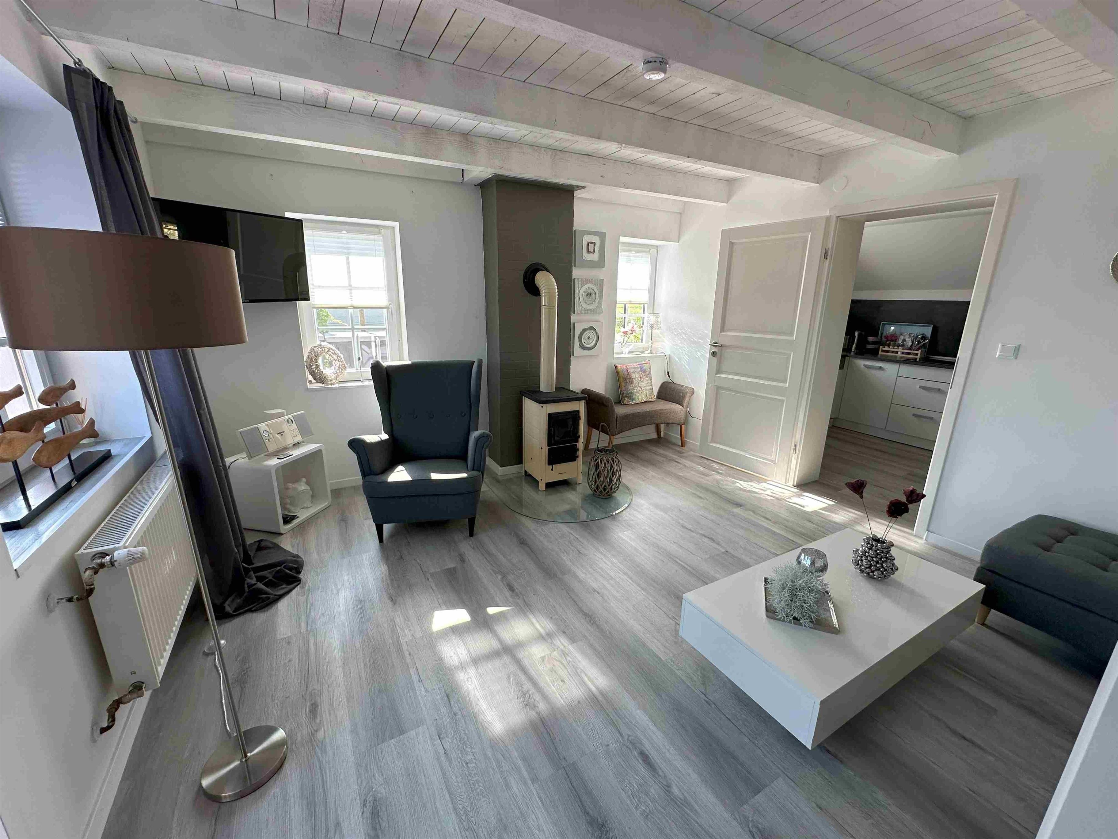 Die Doppelhaushälfte hat eine hübsche Küche mit Spülmaschine, Waschmaschine mit Trockner, Kühlschrank und Backofen. Eine Eckbank mit Blick aus dem Fenster Richtung Deich. Hier macht das Frühstücken richtig Spaß. Die Küche ist frisch ausgerüstet mit3 Kaffeemaschinen, Toaster, Küchengeschirr etc. Das gemütliche und helle Wohnzimmer hat einen kleinen Kaminofen. (Holz bitte mitbringen) Im Wohnzimmer relaxen Sie auf der gemütliche Eckcouch. Von hier geht man auf die Holzterrasse. Hier gibt es einen kleinen Garten , einen hübschen Strandkorb, einen Grill und eine Gartentischgruppe. Das Bad hat eine bodentiefe Dusche und ist mit Handtüchern ausgestattet. Das Schlafzimmer hat ein großes Boxspringbett in 180x200cm , einen gemütlichen Ohrensessel und einen neuen Smart TV. Bis zum Deich sind es nur wenige Minuten. Dann erwartet einen der Blick auf die Nordsee und im Hintergrund Insel Norderney. Wir sind Ostfriesen und lieben Ostfriesland und die Küste. Mit unseren liebevoll eingerichteten Ferienwohnungen möchten wir Ihnen einen schönen Urlaub ermöglichen. Diese schöne Doppelhaushälfte in Deichnähe mit seinem kleinen Garten, der schönen Holzterrasse, dem kostenlosen Parkplatz am Haus und der hochwertigen Ausstattung hat alles was Ihnen einen tollen Aufenthalt an der ostfriesischen Küste ermöglicht. Sie liegt sehr nah am Deich, nah an Norddeich und dem Hafen. Alles ist mit dem Fahrrad leicht erreichbar. Hier können Sie die Weite und die Ruhe genießen. In der Wohnung wurde komplett alles erneuert und renoviert. Ostermarsch liegt zwischen Norddeich und Neßmersiel. Hübsche Fahrradwege direkt am Deich laden zu Touren ein. Zwei Fahrräder sind auch vorhanden und dürfen mitbenutzt werden. Unsere Ferienwohnung "Huus an`t Diek" ist ideal geeignet für zwei Gäste. Kinder sind auch willkommen, müssten dann aber auf der Couch oder auf mitgebrachten Schlafmöglichkeiten schlafen. Lage Diese wundervolle Ferienwohnung befindet sich circa 900 Meter von der Nordseeküste entfernt im ruhigen Ostermarsch. Von hier sind die attraktiven Touristenorte Norddeich und Neßmersiel zu Fuß, mit dem Fahrrad und dem Auto leicht zu erreichen, da eine schnelle Anbindung an eine Landstraße vorhanden ist. In diesen schönen Hafenstädten wird Ihnen nicht nur ein vielseitiges Touristenprogramm wie zum Beispiel Schwimmbäder und Mini-Golfplatz geboten, sondern Sie können auch die wunderschönen Sandstrände genießen. Außerdem wird Ihnen der Wunsch nach den Trauminseln Norderney, Juist und Baltrum nicht verwehrt, denn über die Häfen von Norddeich und Neßmersiel können Sie diese Urlaubsziele mit einer erlebnisreichen Fährfahrt leicht erreichen. Zusätzlich ist in der Nähe ein kleiner Flughafen, der Rundflüge zu den Inseln anbietet. Das perfekt gelegene Dorf Ostermarsch hat aber auch selbst viel zu bieten. Beispielsweise wäre zu erwähnen, dass dieses wunderhübsche Ostfriesendorf nur wenige Meter von der Nordsee entfernt ist und sich somit ideal für entspannende Deichspaziergänge eignet. Falls allerdings Lust auf eine moderne Altstadt besteht, sind sie innerhalb von 6 Fahrminuten in Norden.