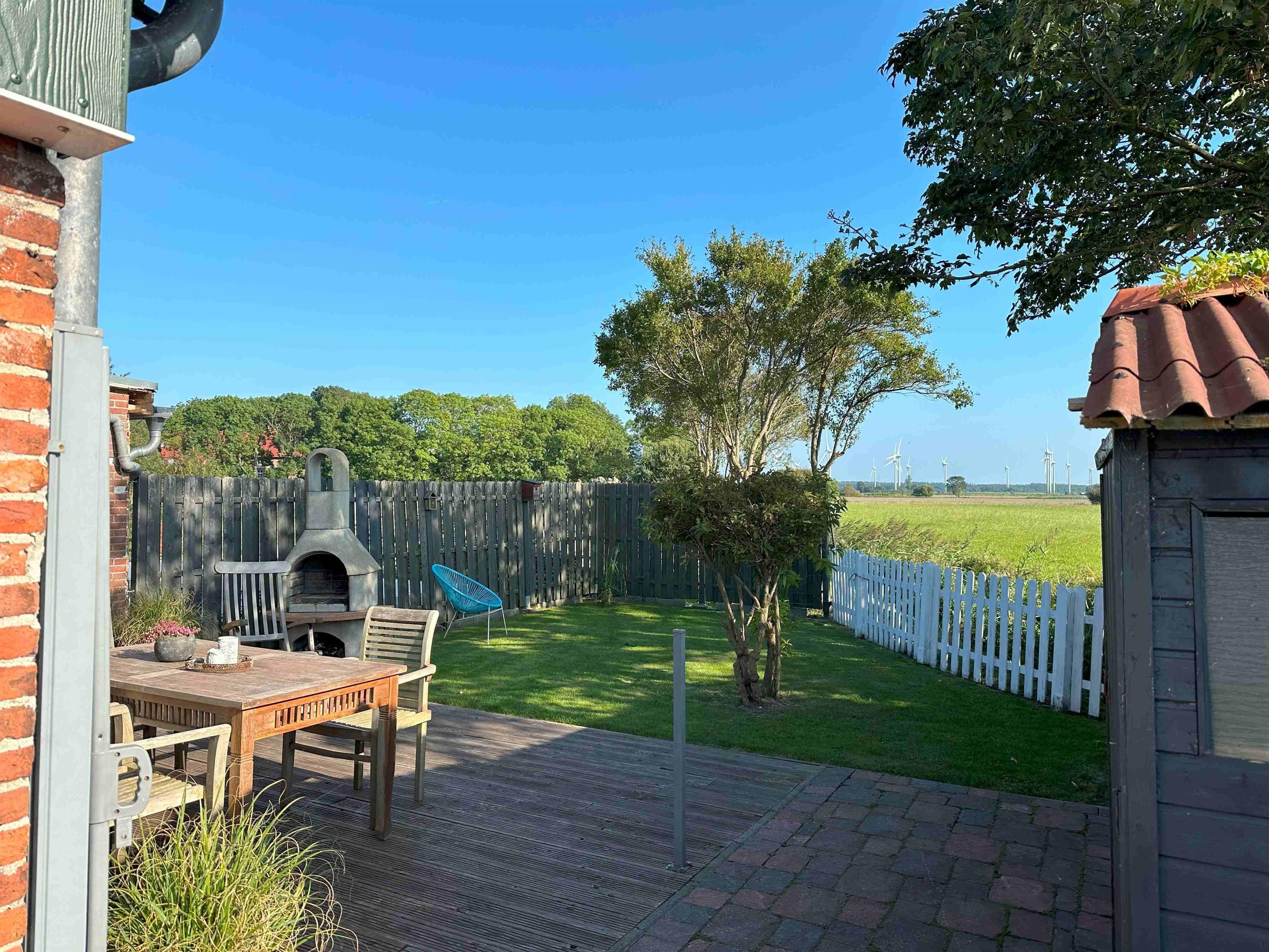 Gemütliche Doppelhaushälfte in Norden nahe Deich und Nordsee mit Garten, Terrasse, Strandkorb und moderner Ausstattung.