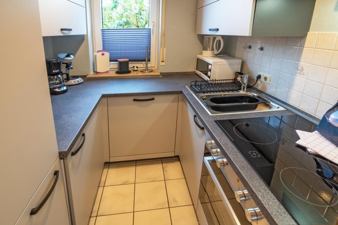 Die Küche ist kompakt und verfügt über alles, was Sie zum Zubereiten Ihrer Mahlzeiten benötigen. So gehören ein Herd mit Cerankochfeld mit vier Platten, ein Backofen, eine Spülmaschine, eine Kaffeemaschine, eine zusätzliche Kaffee-Kapselmaschine, ein Kühlschrank, eine Mikrowelle, ein Toaster, ein Eierkocher und ausreichend Geschirr, Gläser und Besteck zur Ausstattung. Hier, im Wohn- und Essbereich nehmen Sie Ihre Mahlzeiten am großen Esstisch ein oder nutzen diesen für gemeinsame Spielerunden.