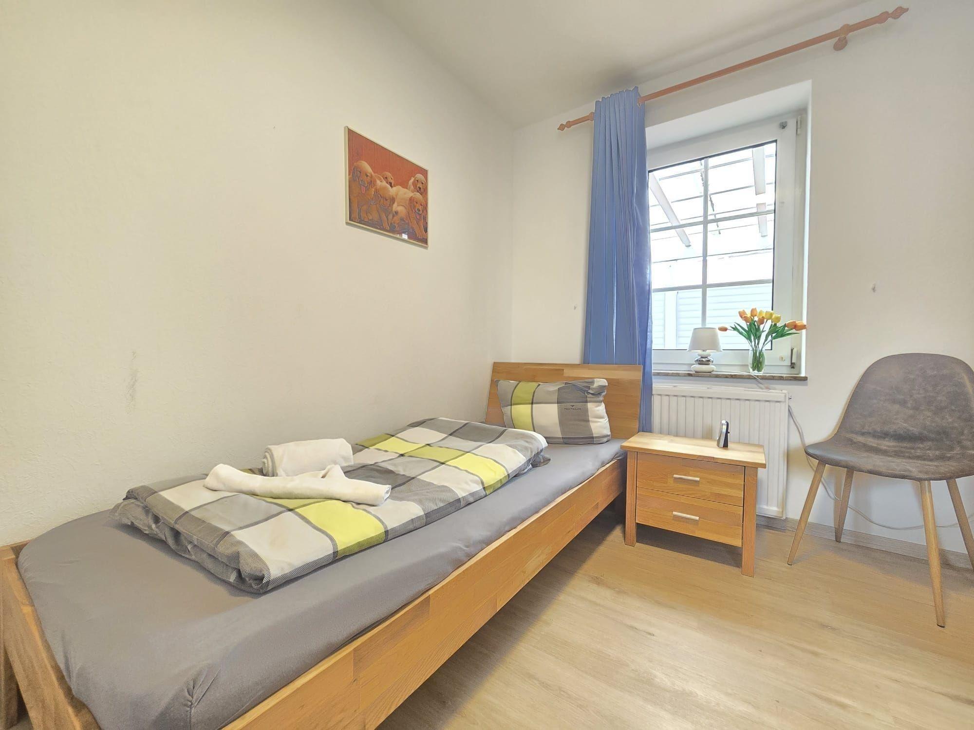 Die Ferienwohnung bietet eine komfortable und allergikergeeignete Unterkunft, die ideal für entspannte Urlaube ist. Mit zwei Schlafzimmern, einem Doppelbett und zwei Einzelbetten, ist ausreichend Platz für bis zu vier Personen vorhanden. Die separate Küche ist voll ausgestattet mit einem Geschirrspüler, Elektro-/Gasherd, Backofen, Mikrowelle und Kühlschrank, ergänzt durch eine Kaffeemaschine und Gefriermöglichkeiten.