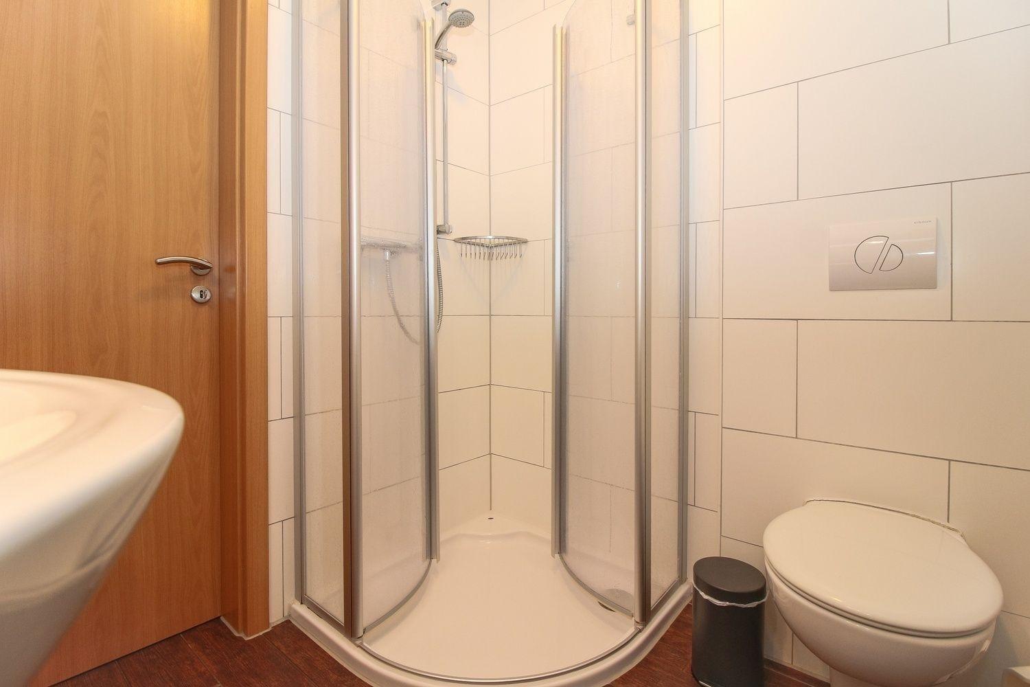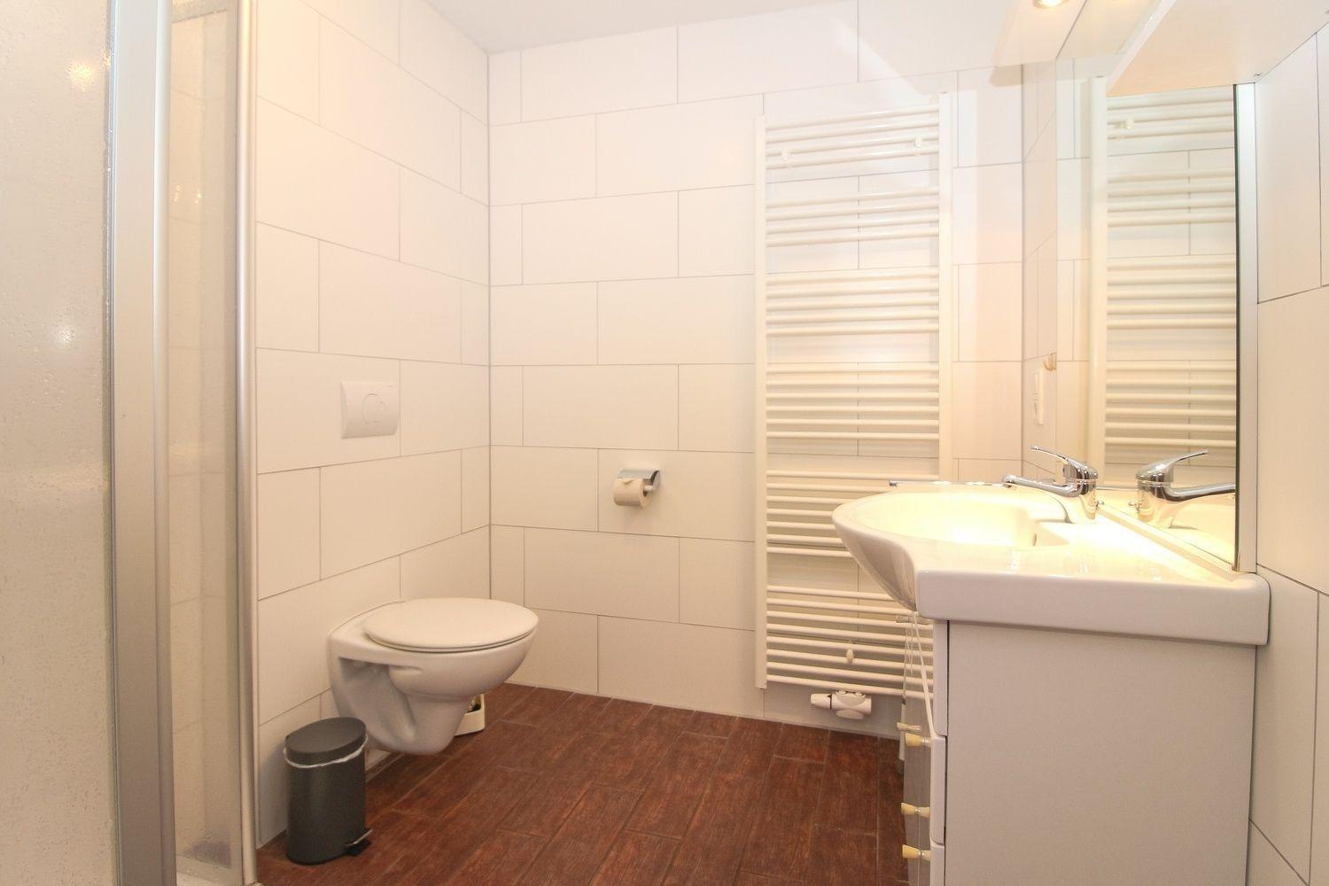 Das innen liegende Bad ist mit einem Waschtisch und einer Dusche ausgestattet.