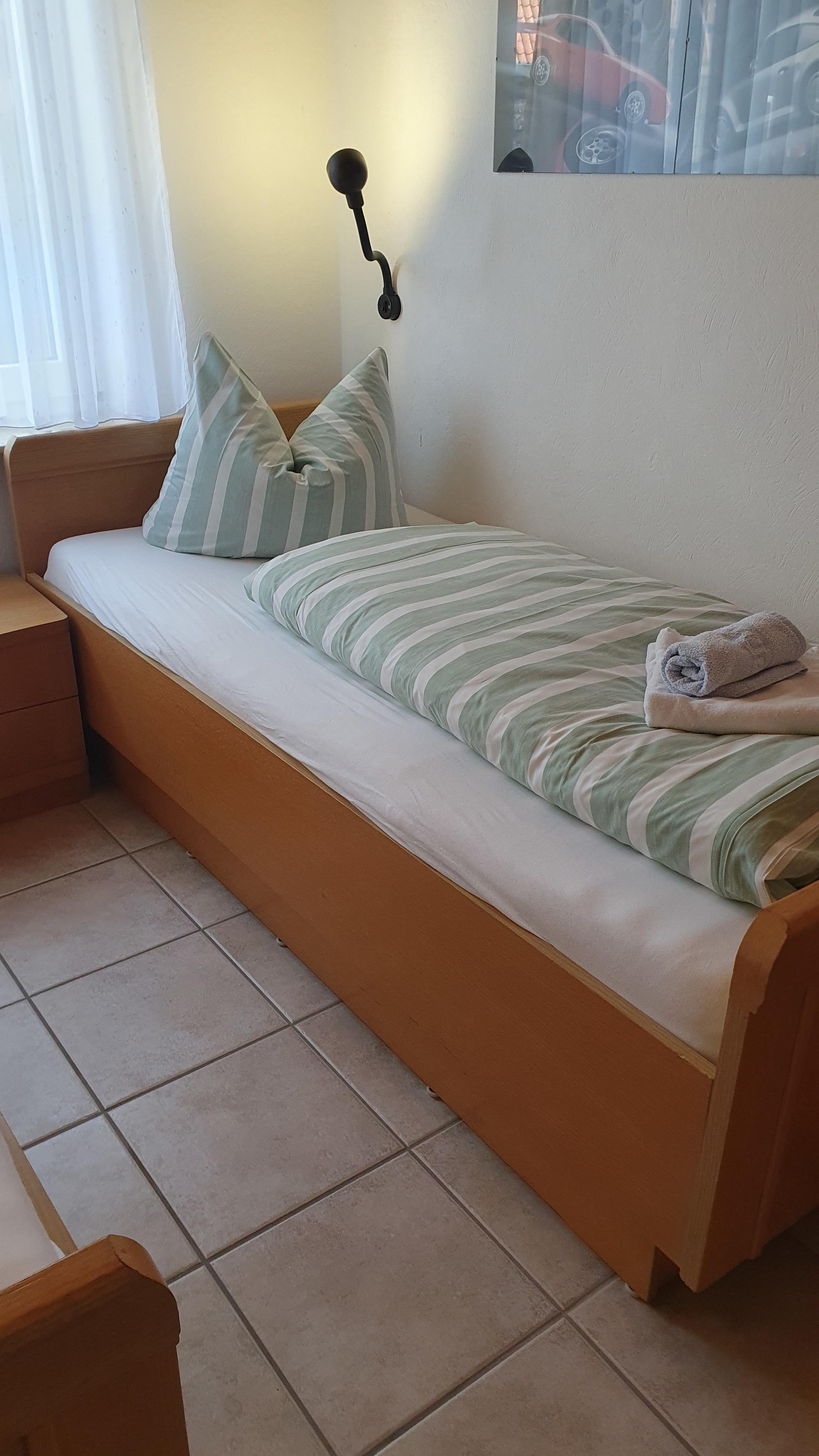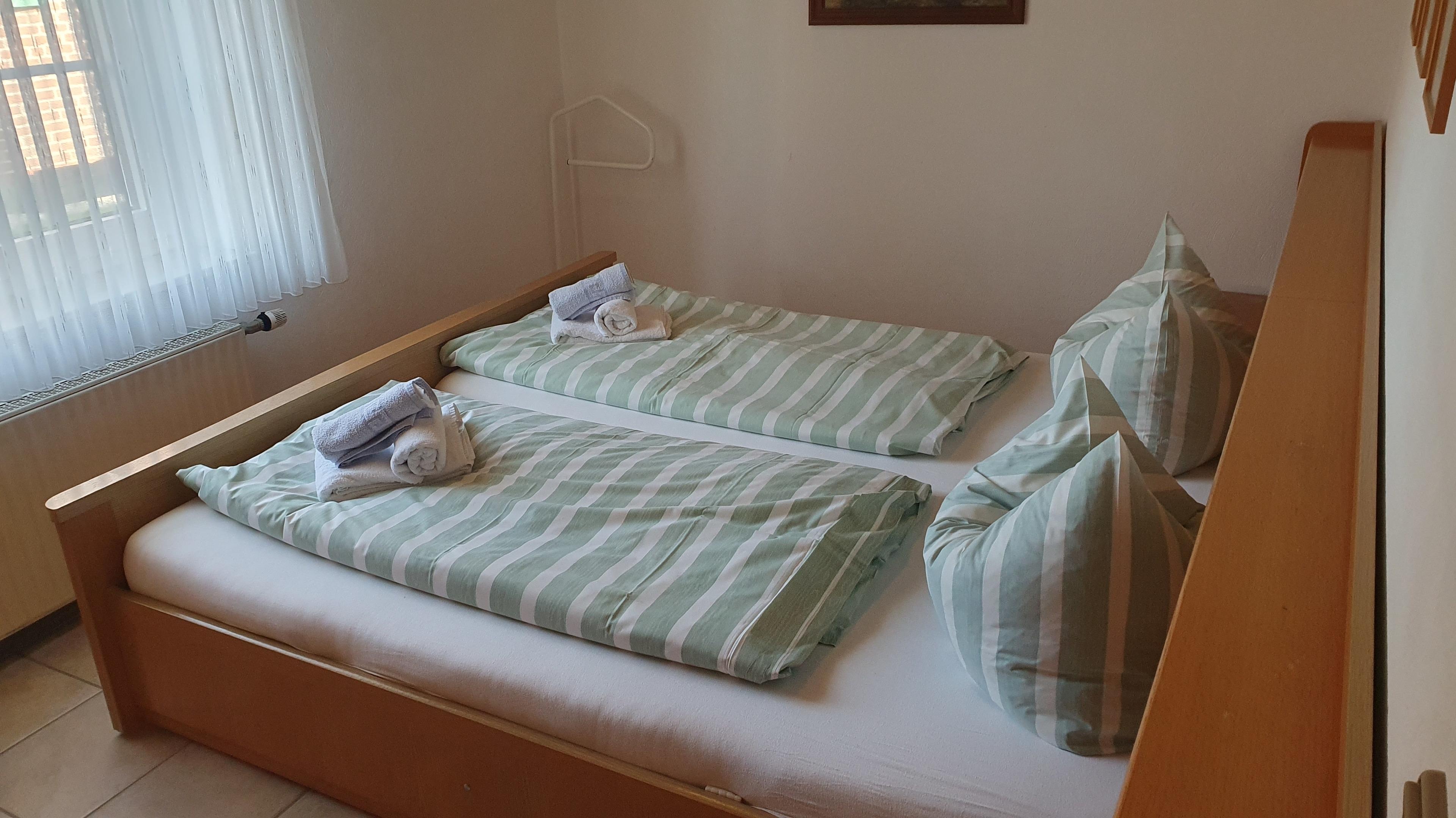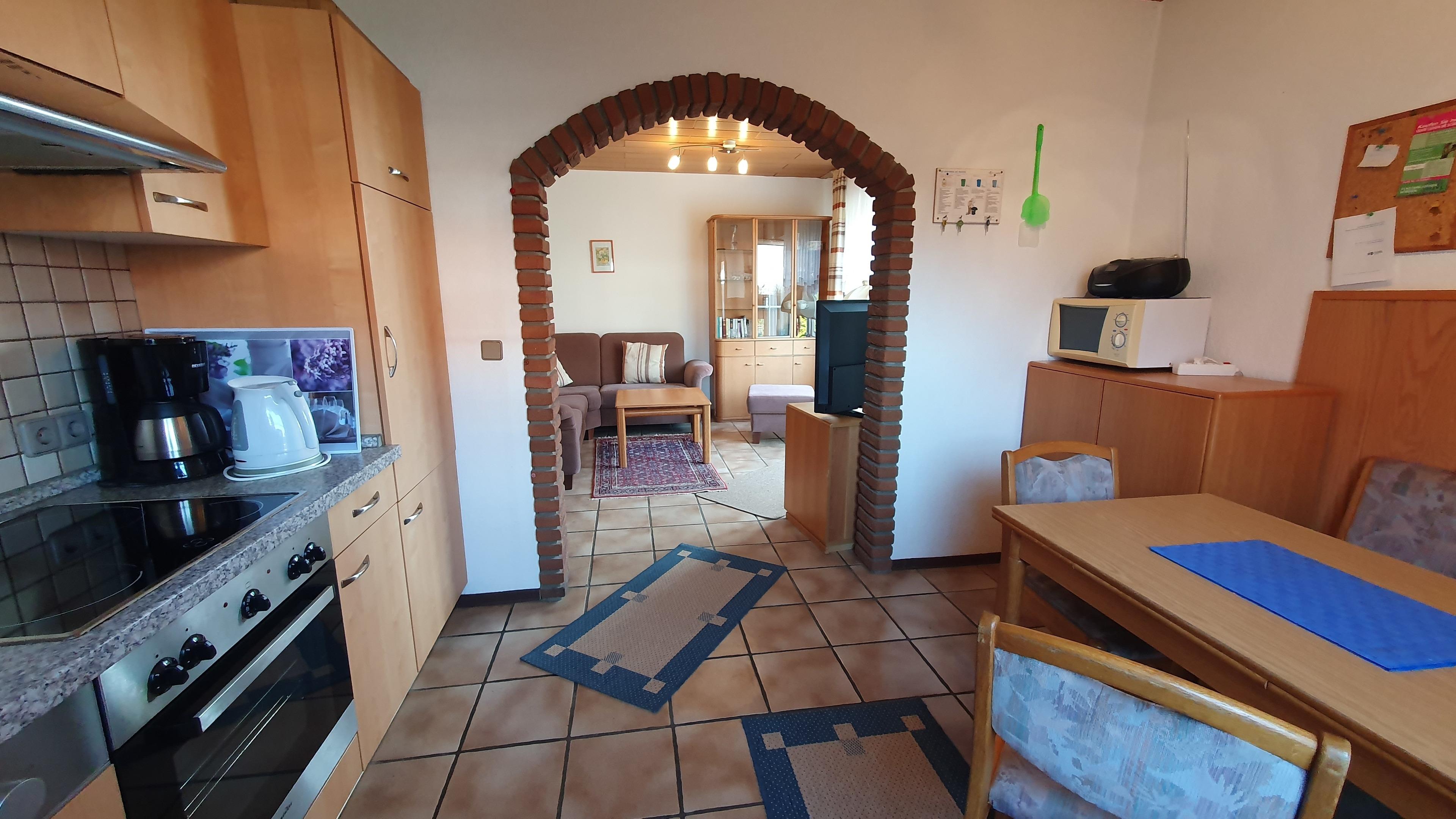 Willkommen im Familienurlaub in Norddeich! Im Herzen des Ortes finden Sie unsere gepflegte Ferienwohnung Schonerweg 22, Norddeich. Hier können Sie mit bis zu 4 Personen einen entspannten Urlaub an der Nordseeküste verbringen. Die Wohnung ist gut aufgeteilt und bietet 2 Schlafzimmer, einmal mit Doppelbett, das andere Schlafzimmer mit 2 Einzelbetten. Rollläden sorgen für geruhsame Nächte. Der offene Wohn- und Essbereich hat einen direkten Zugang zur eigenen Terrasse, die gut ausgestattete Küche beinhaltet u.a. eine Spülmaschine und E-Herd mit Backofen. Der Kühlschrank hat ein kleines Gefrierfach. Das Bad verfügt über Tageslicht und eine Dusche. Im Außenbereich haben Sie nicht nur eine eigene Terrasse sondern auch einen eigegen PKW Stellplatz direkt am Haus. Fahrräder können Sie in der Garage sicher unterstellen.