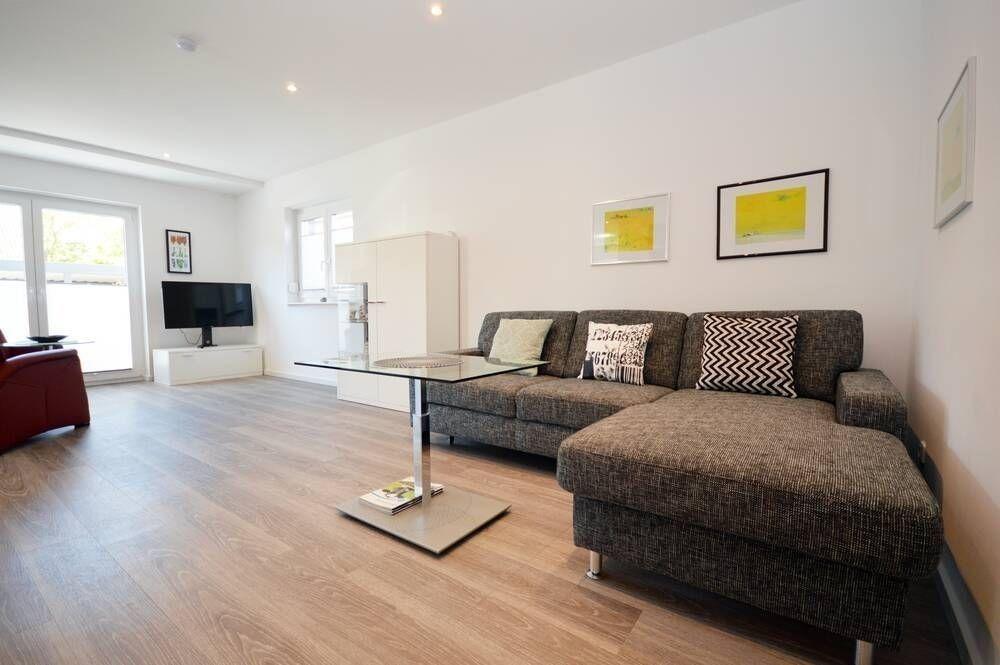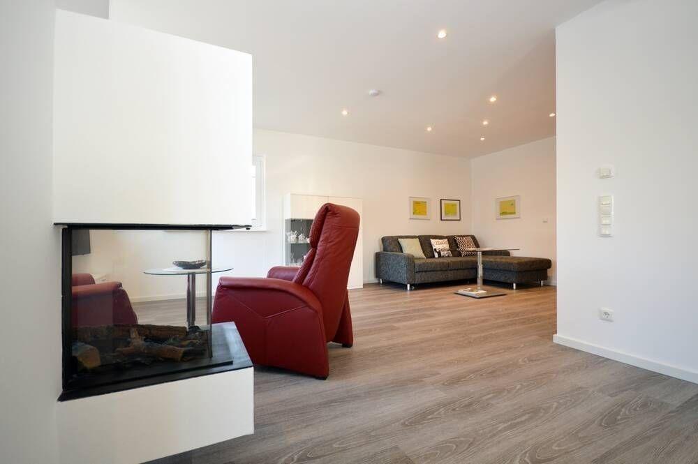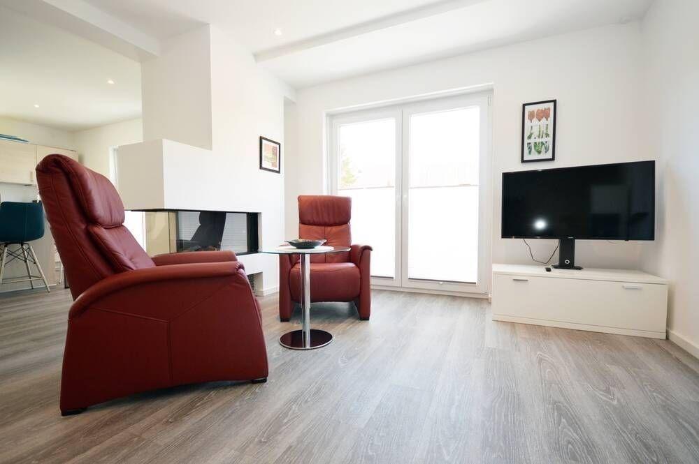 Moderne Ferienwohnung in Norden mit Terrasse, Gaskamin und Haustierfreundlichkeit für entspannte Nordseeferien.