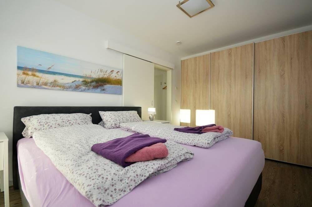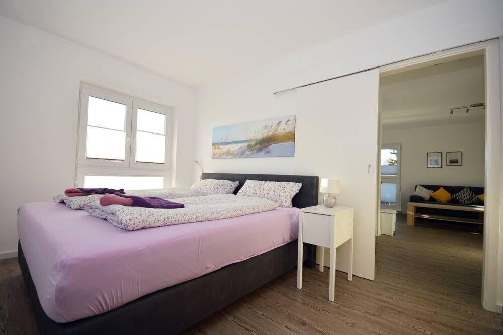 Im Schlafzimmer steht Ihnen ein Boxspringbett zur Verfügung; hier kann für die dritte Person auch ein Baby-Reisebettchen aufgestellt werden; oder die dritte Person findet auf der Schlafcouch im Wohn-/ Essbereich seinen Schlaf um neue Energie für den nächsten Tag zu tanken.