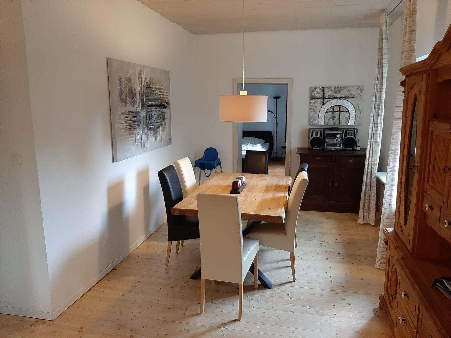Die komfortable Wohnküche bildet das Herzstück des Hauses. Hier finden Sie einen Essbereich für bis zu 8 Personen, ideal für gemeinsame Mahlzeiten oder gemütliche Spieleabende. Die Küche ist voll ausgestattet mit Ceranfeld & Backofen, Kühlschrank mit kleinem Gefrierfach, Spülmaschine, Mikrowelle, Wasserkocher, Kaffeepadmaschine, Kaffeemaschine sowie ausreichend Geschirr und Kochequipment.