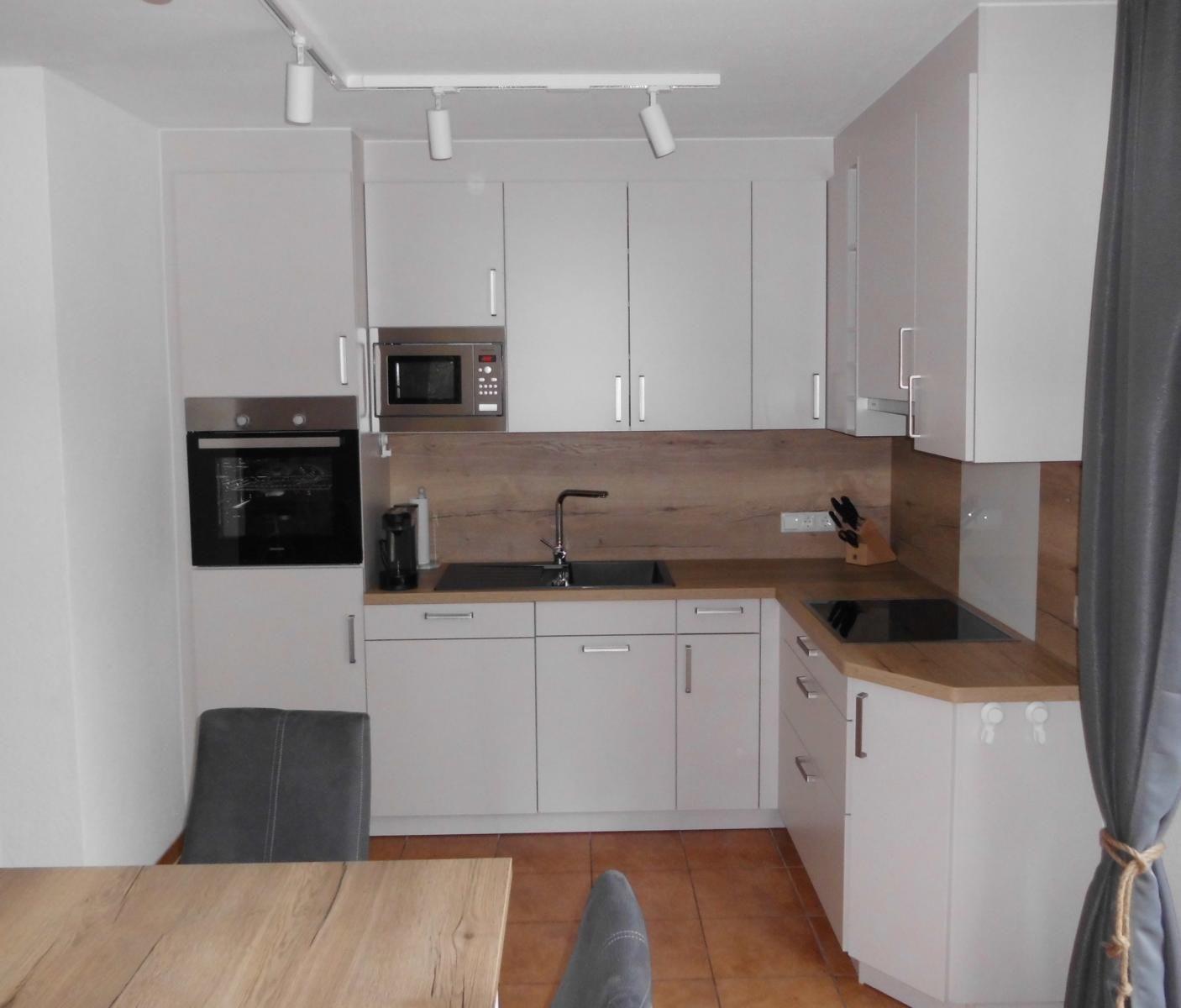 Das Apartment ist wie folgt ausgestattet: Wohn-/ Esszimmer mit voll eingerichteter Küche (Herd mit Ceran Kochfeld, Backofen, Mikrowelle, Spülmaschine, Kühlschrank mit Gefrierfach, Kaffeemaschine, Toaster, Wasserkocher, Kochgeschirr etc.), Dusche-WC, Schlafraum mit Doppelbett, Sat-TV, Waschmaschine, Bügelbrett, Bügeleisen, Wäscheständer, Kinderhochstuhl.