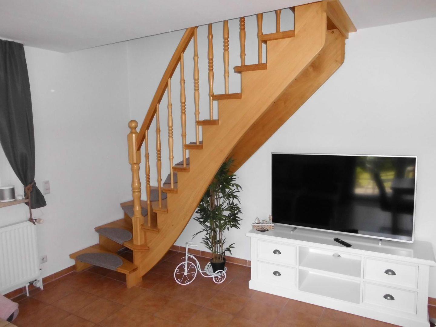 Das Haupthaus für 5 Personen verfügt im Erdgeschoss über ein großes Wohn-/ Esszimmer mit einer komplett ausgestatteten Küche (Herd mit Ceran Kochfeld, Backofen, Kühlschrank mit Gefrierfach, Mikrowelle, Kaffeemaschine, Toaster, Wasserkocher, Kochgeschirr etc.). Im Wohnbereich befindet sich ein Smart-TV.