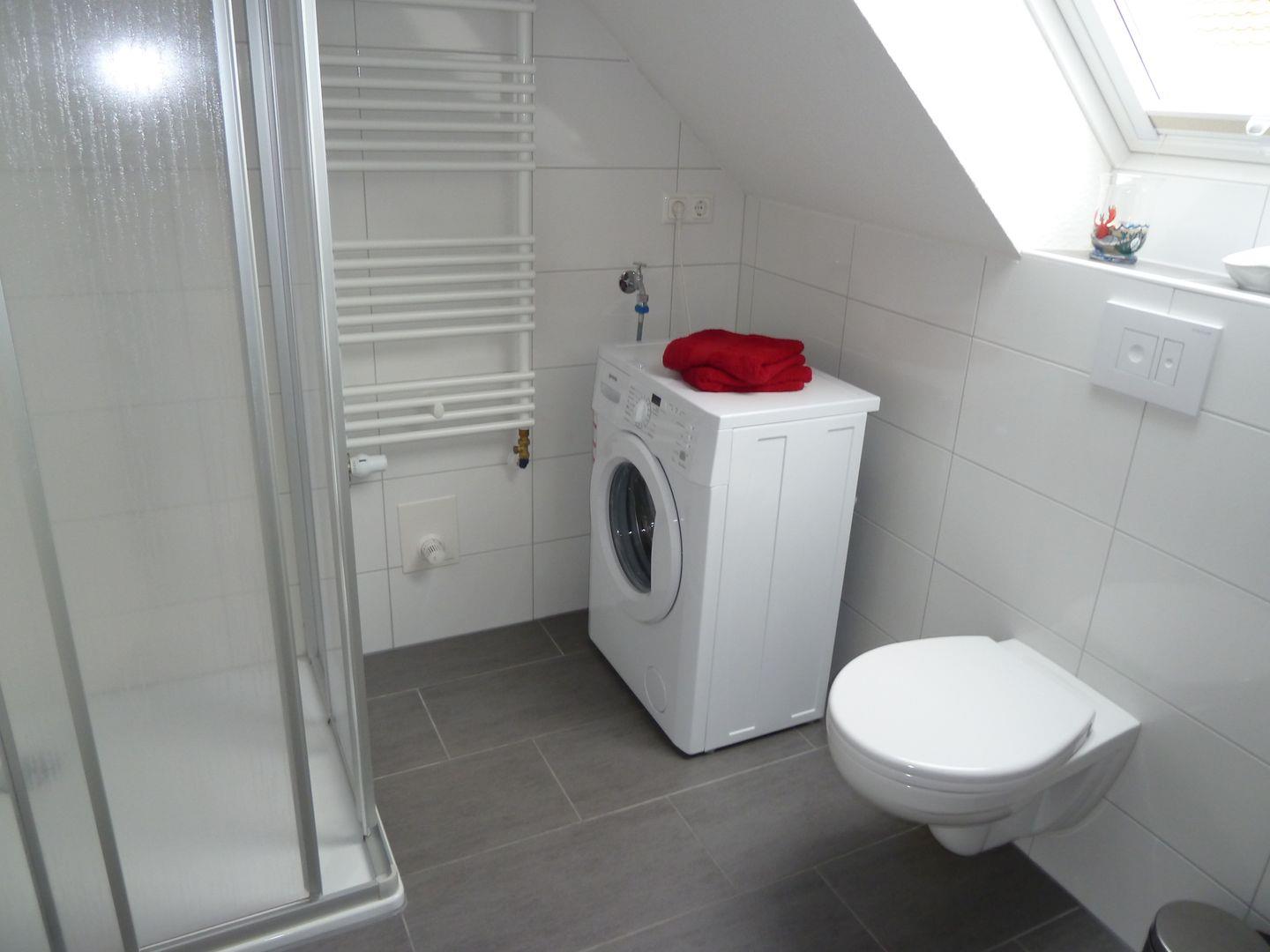 Dusche (mit niedrigem Einstieg)/WC, Waschmaschine, Handtuchwärmer, Föhn. Das Bad verfügt über eine Fußbodenerwärmung.