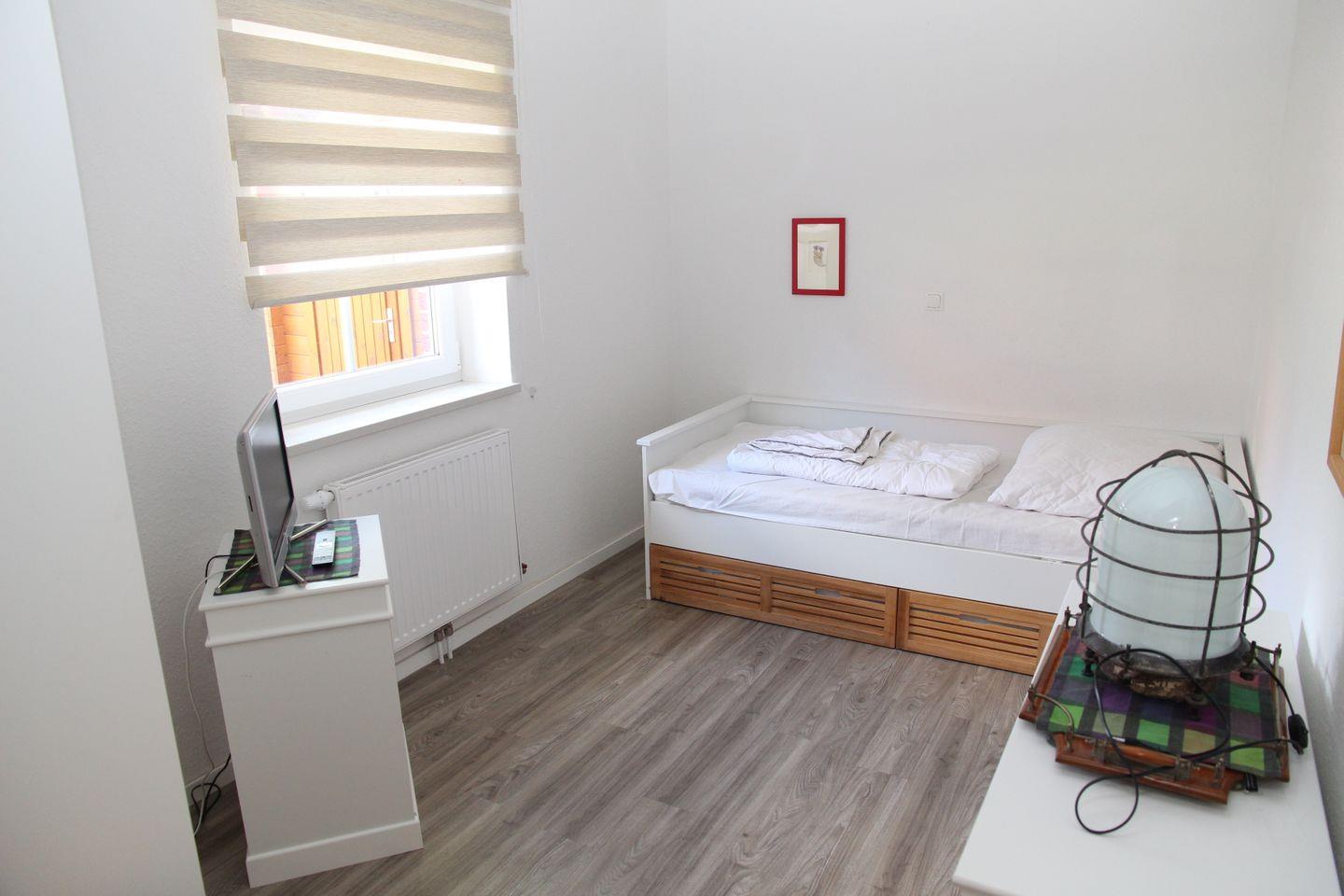 Das Schlafzimmer hat ein Doppelbett. Der zweite Schlafraum besitzt ein ausziehbares Kombibett, dass tagsüber als Sofa Verwendung finden kann. Ein SAT-TV mit angeschlossener Wii-Spielekonsole ergänzt die Einrichtung.