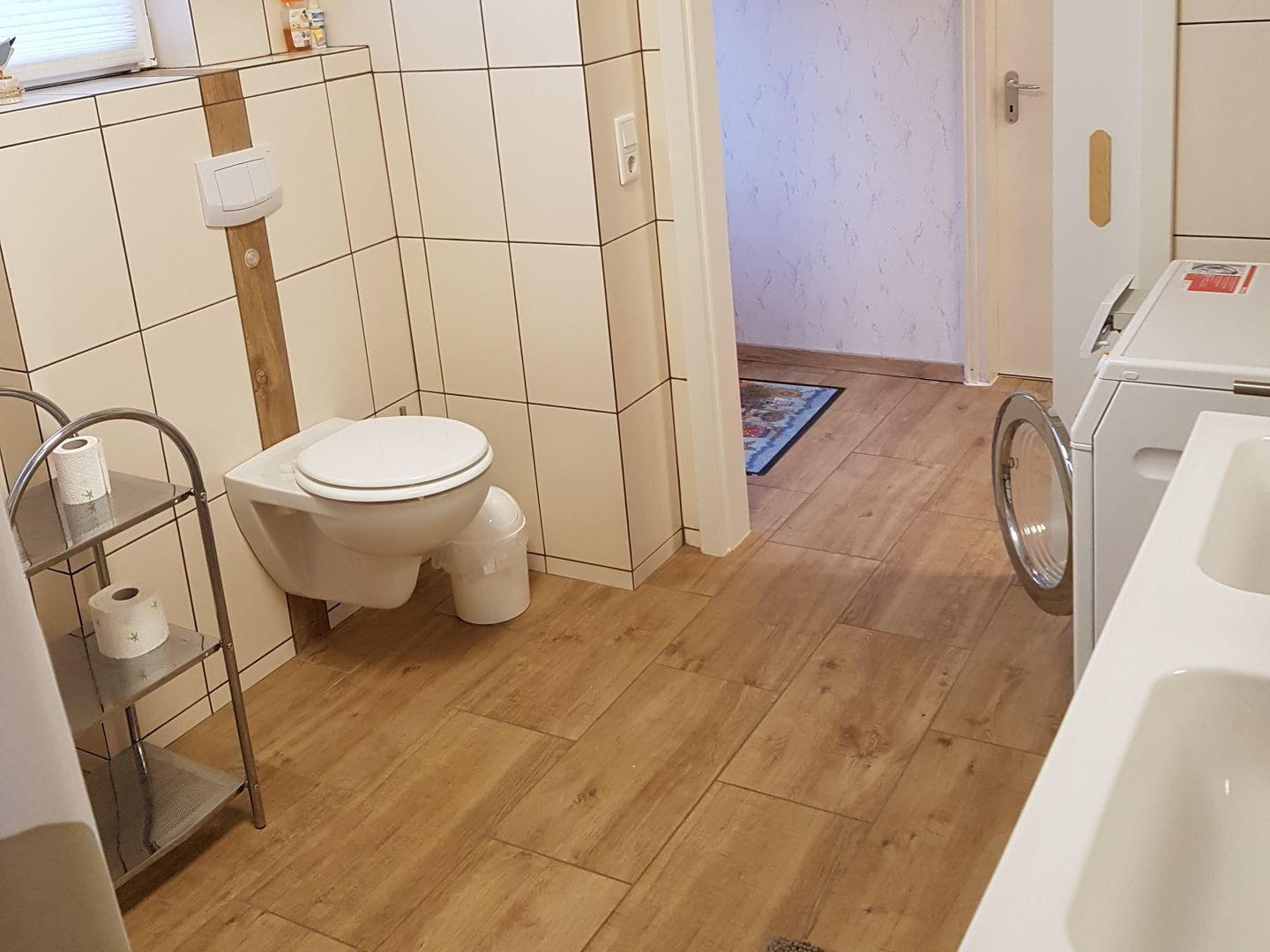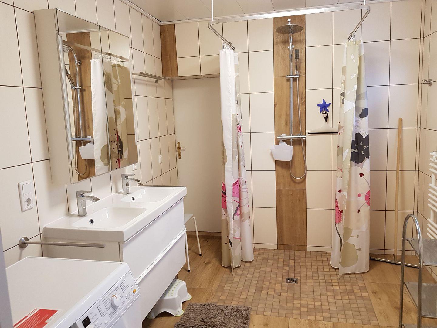 Begehbare Dusche/WC & Waschmaschine.