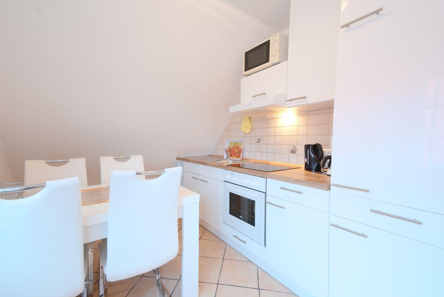 Die Küche ist offen zum Wohnbereich mit Essbereich.