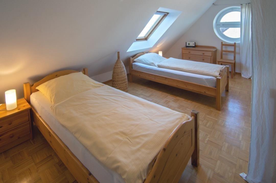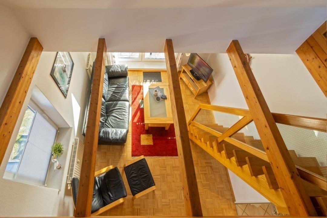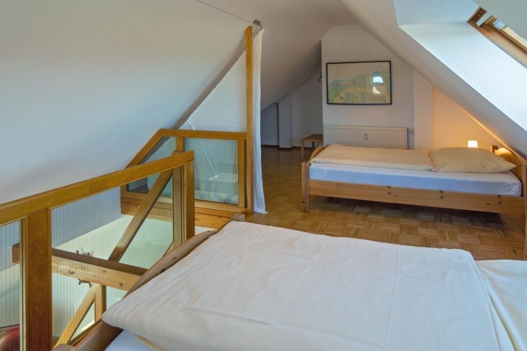 Das zweite Schlafzimmer der Wohnung liegt im Dachgeschoss und lässt sich über die Innentreppe vom Wohnbereich aus erreichen.