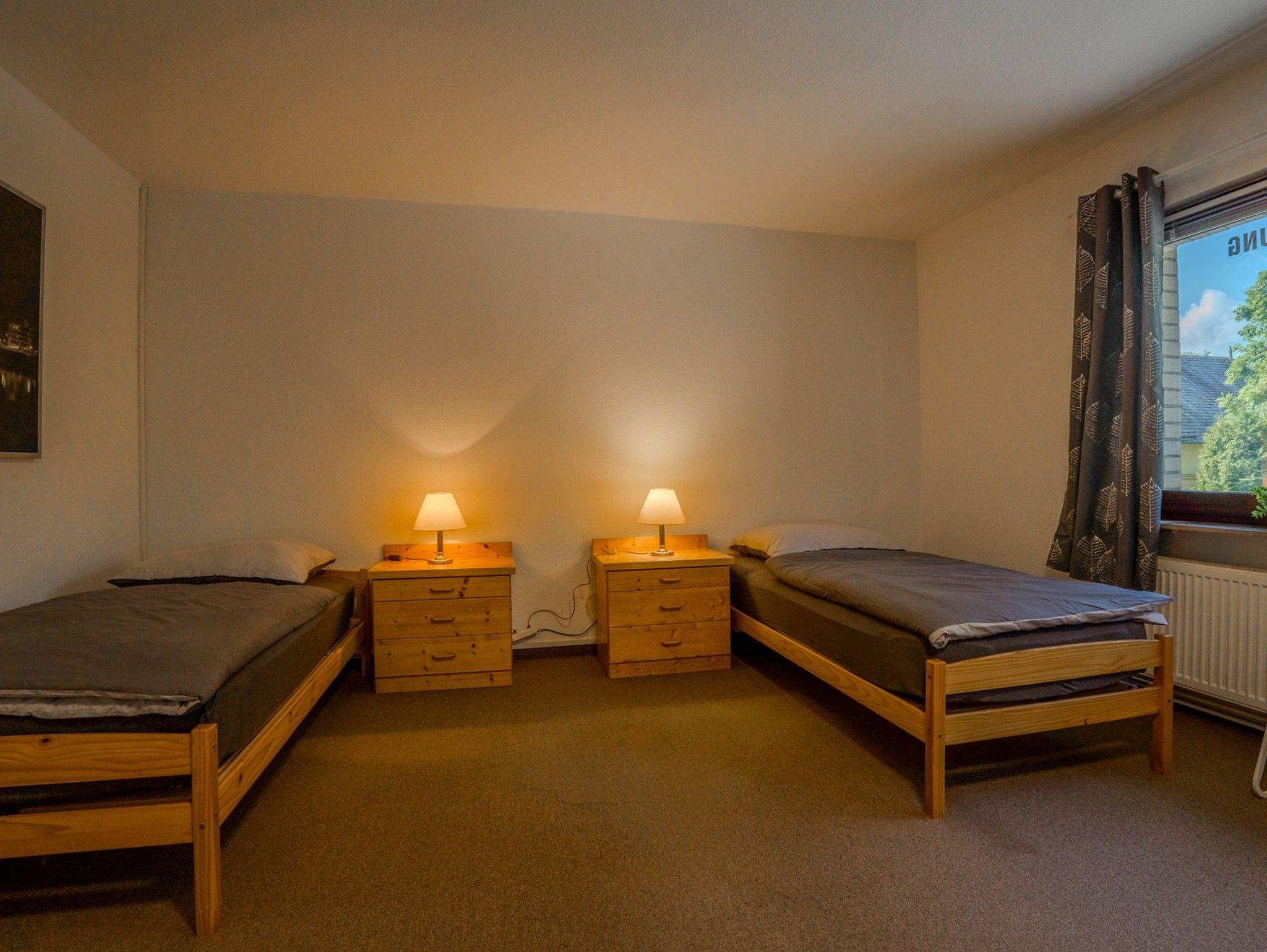 Jedes Zimmer verfügt über einen Fernseher, einen Tisch mit Stuhl und ein bequemes Bett. Bettwäsche und Handtücher liegen bereit(keine bezogenen Betten) Im allgemeinen Bereich stehen eine voll ausgestattete Küche und ein Duschbad sowie ein Aufenthaltsraum zur Verfügung. Es können ebenfalls ein Waschmaschine und ein Trockner genutzt werden. Selbstverständlich ist jedes Zimmer individuell abschließbar.