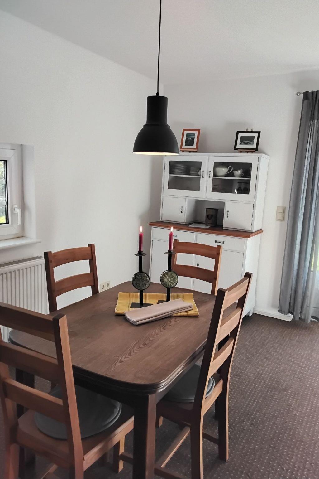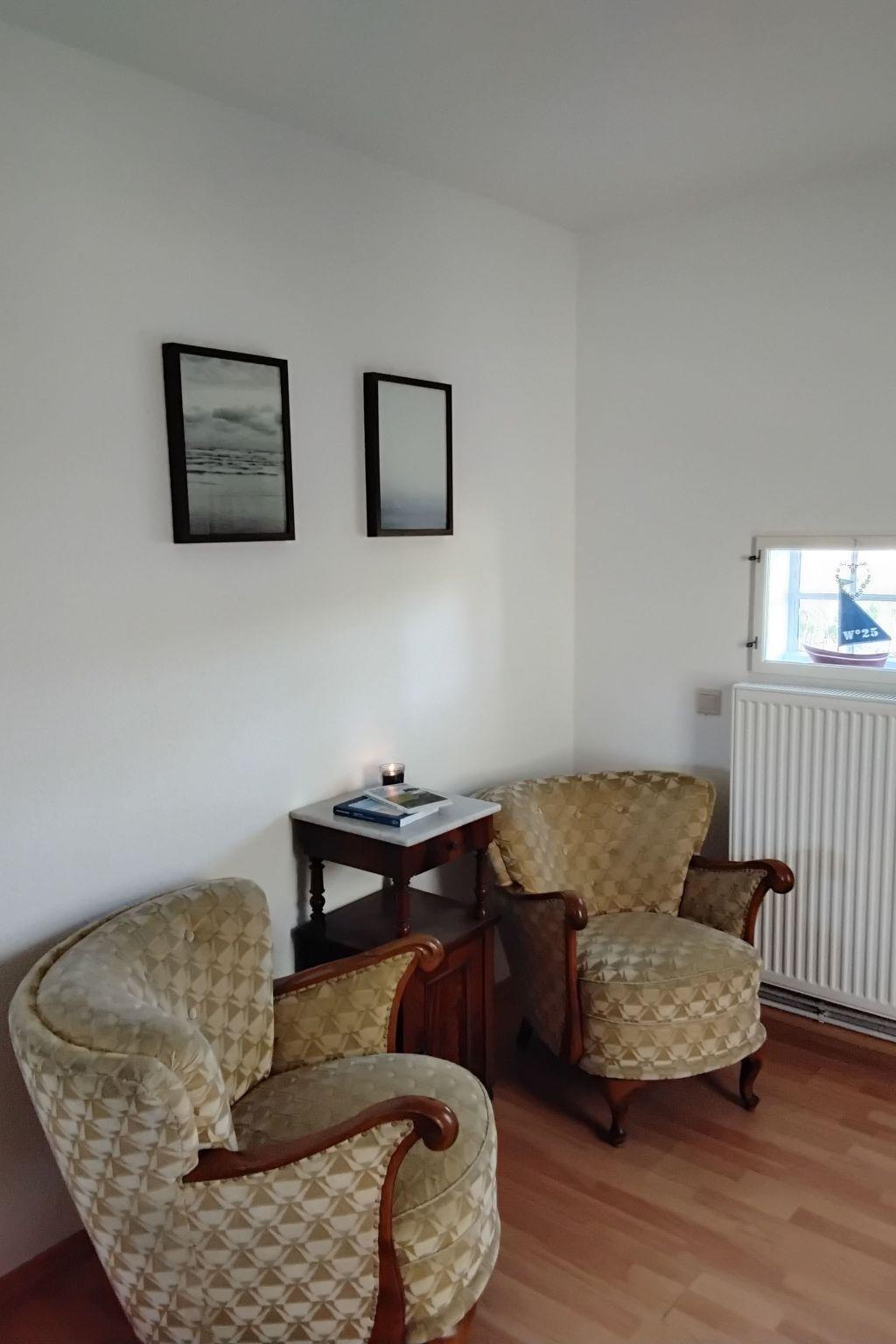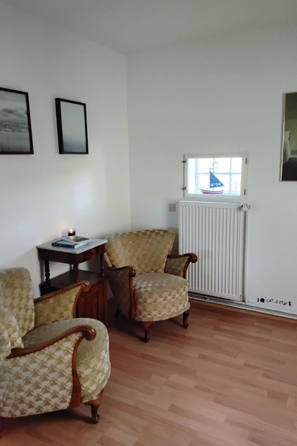Im Jahre 2013 wurde das Haus von Grund auf renoviert. Hier haben sie nun die Möglichkeit auf 75m², mit zwei Erwachsenen, zwei Kindern und einem Vierbeiner Ihren Urlaub von der ersten Minute an zu genießen. Im Obergeschoss befinden sich die beiden Schlafräume mit je einem Doppelbett, auf Anfrage stellt man Ihnen gerne kostenfrei ein Gitterbett zur Verfügung. Im Untergeschoss befindet sich das Duschbad und der große lichtdurchflutete Wohnraum: mit Küchenzeile, Essplatz und Sofa - Ecke. Die Küchenzeile verfügt über ein drei Platten Ceranfeld, Dunstabzugshaube Umluftherd und Geschirrspüler, anbei befindet sich der Stand-Kühlschrank mit großem Gefrierfach. Die Wohnecke verfügt über einen Zweisitzer und einen Dreisitzer, Sat.-TV und DVD Player.