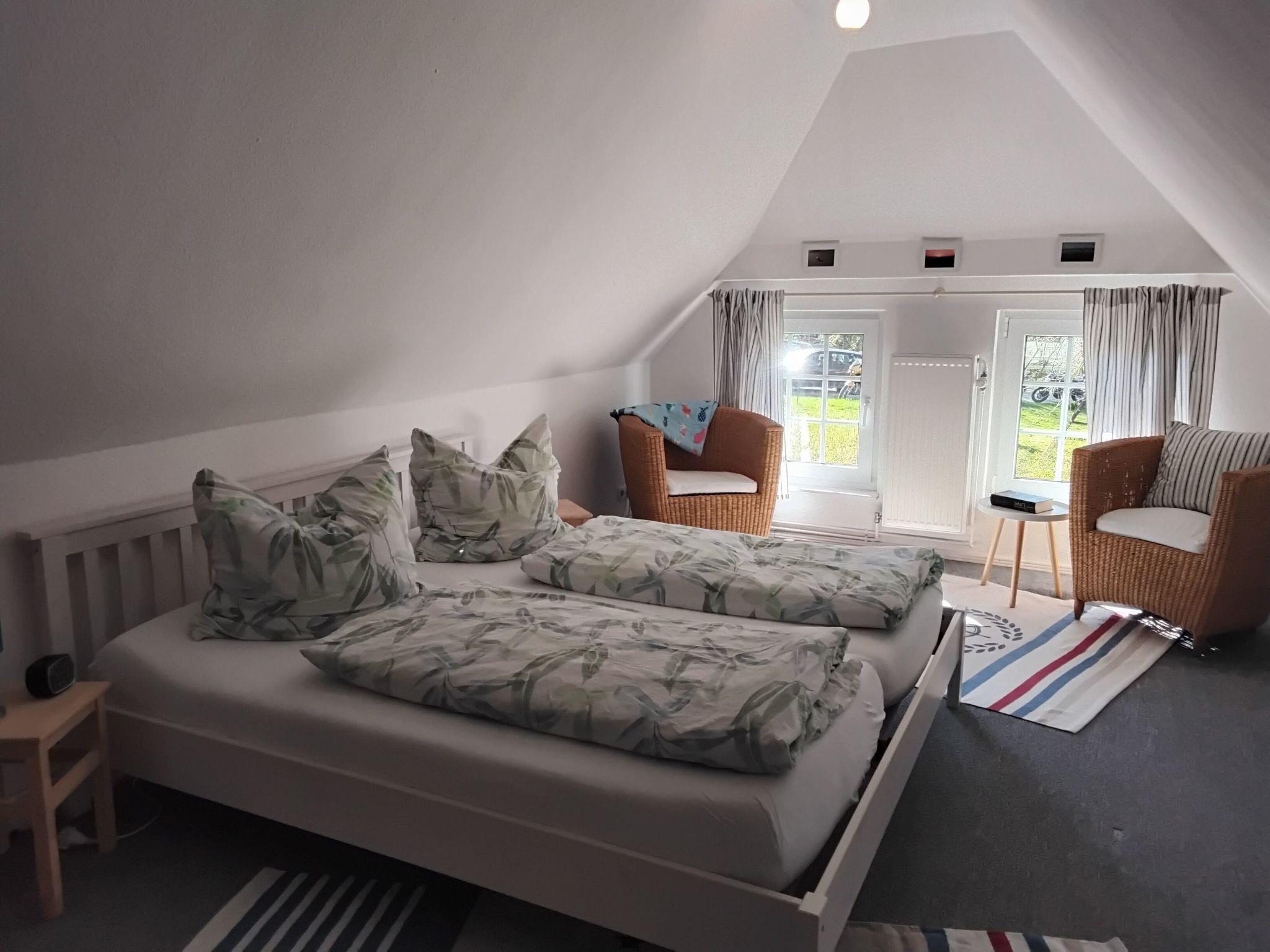 Das Haus ist eine kleine Reetdachkate über zwei Etagen. Es liegt hinter der zweiten Deichlinie an einem Wirtschaftsweg, nur 800m Luftlinie entfernt von der Nordsee. Das Haus bietet Platz für vier Personen.