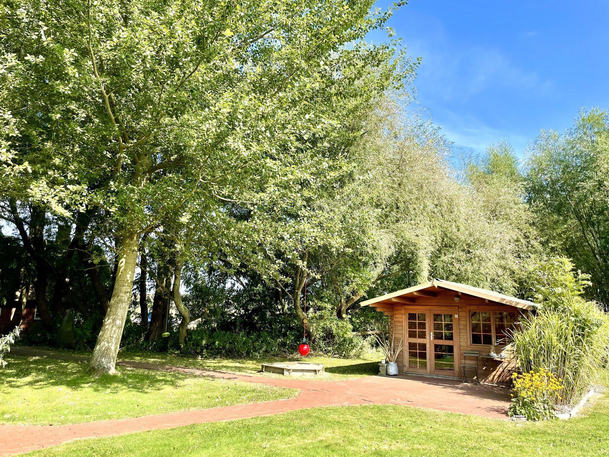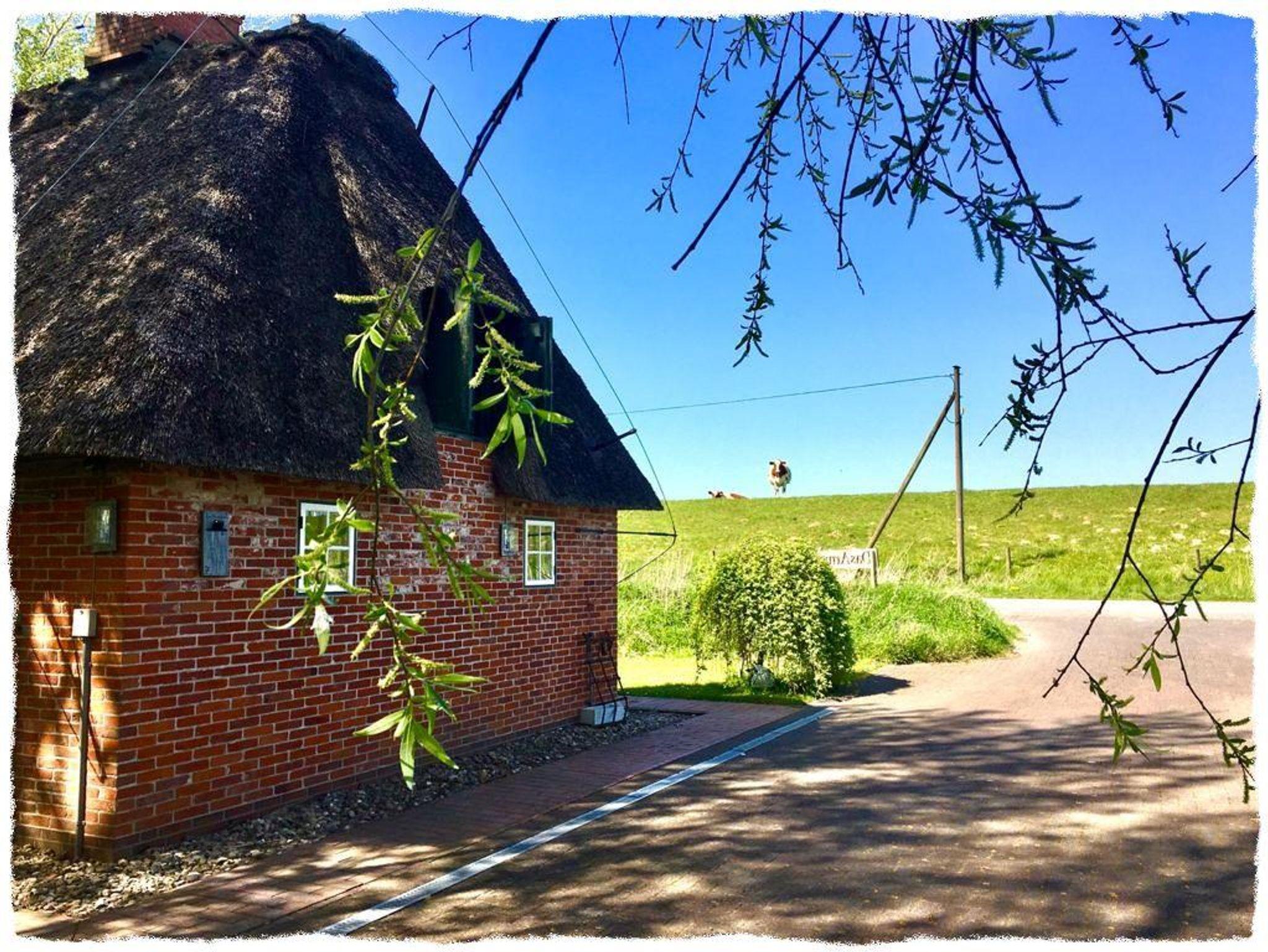 Herzlich Willkommen Erleben Sie in unserem Ferienhaus - ausgezeichnet mit 4 Sternen - einen unvergesslichen Urlaub! Genießen Sie die ruhige Alleinlage am Deich - 500 Meter von der Nordsee entfernt. Unsere helle Reetdachkate bietet Ihnen auf zwei Ebenen und über 120 m² Platz zum Erholen und um sich mit der Familie Wohlzufühlen. Die Gartenanlage mit dem alten Baumbestand, Terassen zu Land und zu Wasser, sowie ein Holzhaus und das große Grundstück laden zum verweilen ein. Für unsere kleinen Gäste bietet der alte Baumbestand eine tolle Kletter- und Entdeckerzone. Auf den großen Rasenflächen kann nach Herzenslust getobt werden. Neben einer Sandkiste mit Sandspielzeug findet man aber auch tolle Baumschaukeln.