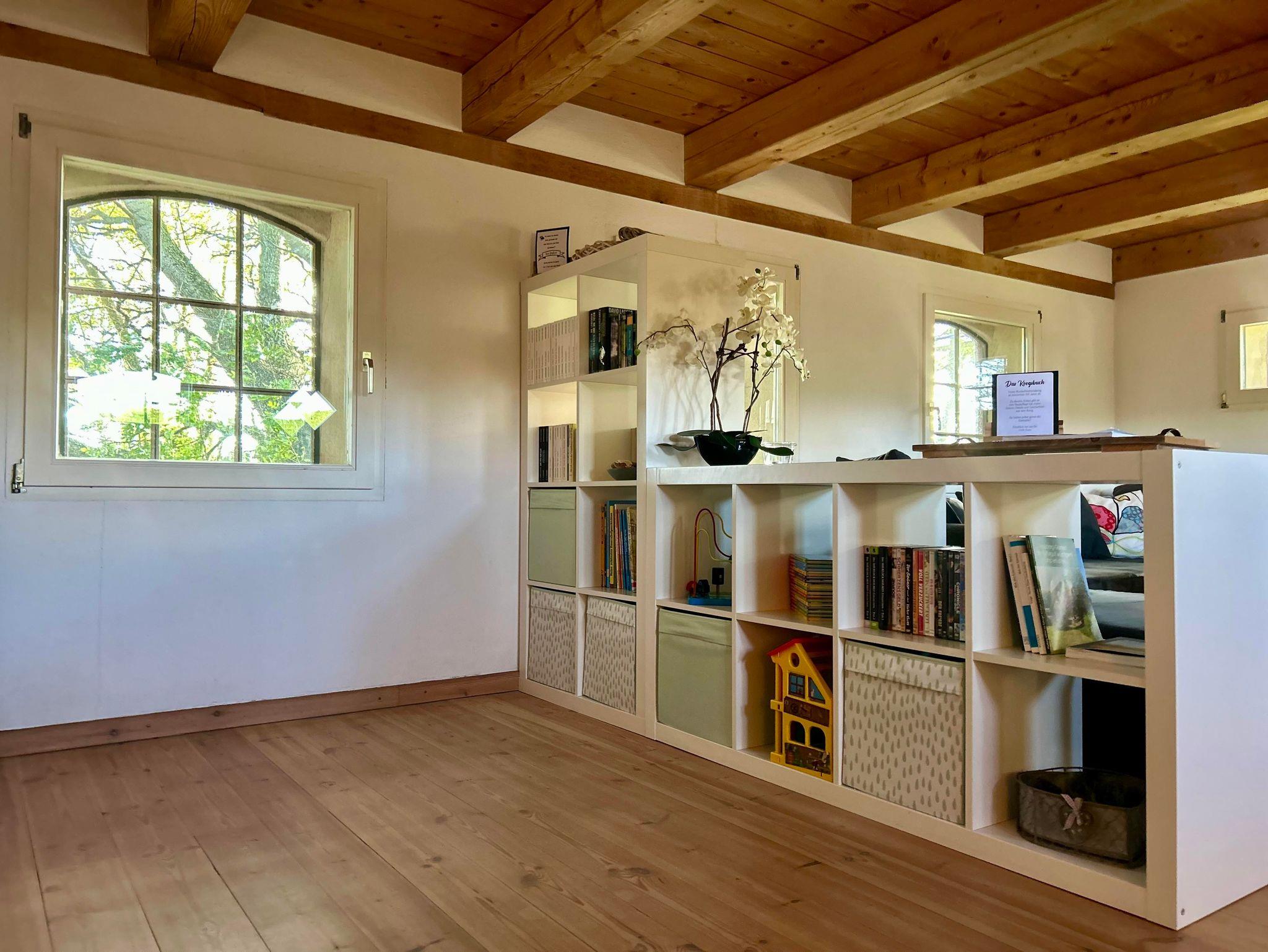 Hier finden unsere kleinen Gäste viel zu spielen und Kinderbücher. Gesellschaftsspiele für Klein und Groß sind im Esszimmerschrank.