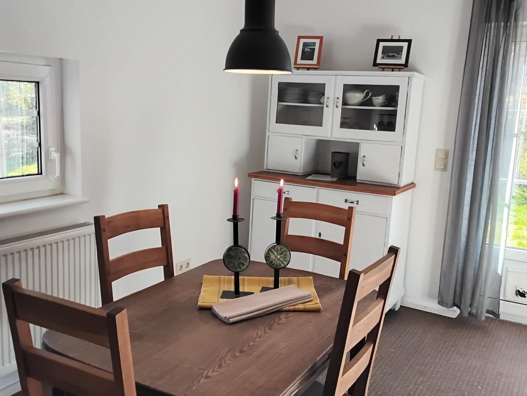 Das Lütte Hus bietet auf einer Fläche von ca. 75 qm Platz für 4 Personen. Im Erdgeschoss befinden sich der Wohn-/Essbereich mit Sofa-Ecke, Essgruppe, SAT-TV,DVD-Player, sowie die in in den Wohnraum integrierte, komplett ausgstattete Küche mit Elektro-Herd, Backofen, Geschirrspüler, Kühl-Gefrierkombination und allem, was man für die Urlaubsküche braucht. Das Badezimmer ist mit einer Dusche und WC ausgestattet und befindet sich ebenfalls im Erdgeschoss. Über eine steile Treppe gelangt man in das Obergeschoß mit den zwei Schlafräumen. Der erste Schlafraum verfügt über ein französisches Bett (1,40 x 2,00 m, mit Fußende) und einer Kommode, der zweite Schlafraum ist mit einem Doppelbett (1,80 x 2,00 m, mit Fußende) einer Kommode und Kleiderschrank eingerichtet. Einen Kinderhochstuhl und ein Kinderbett stellen wir Ihnen kostenlos zur Verfügung.