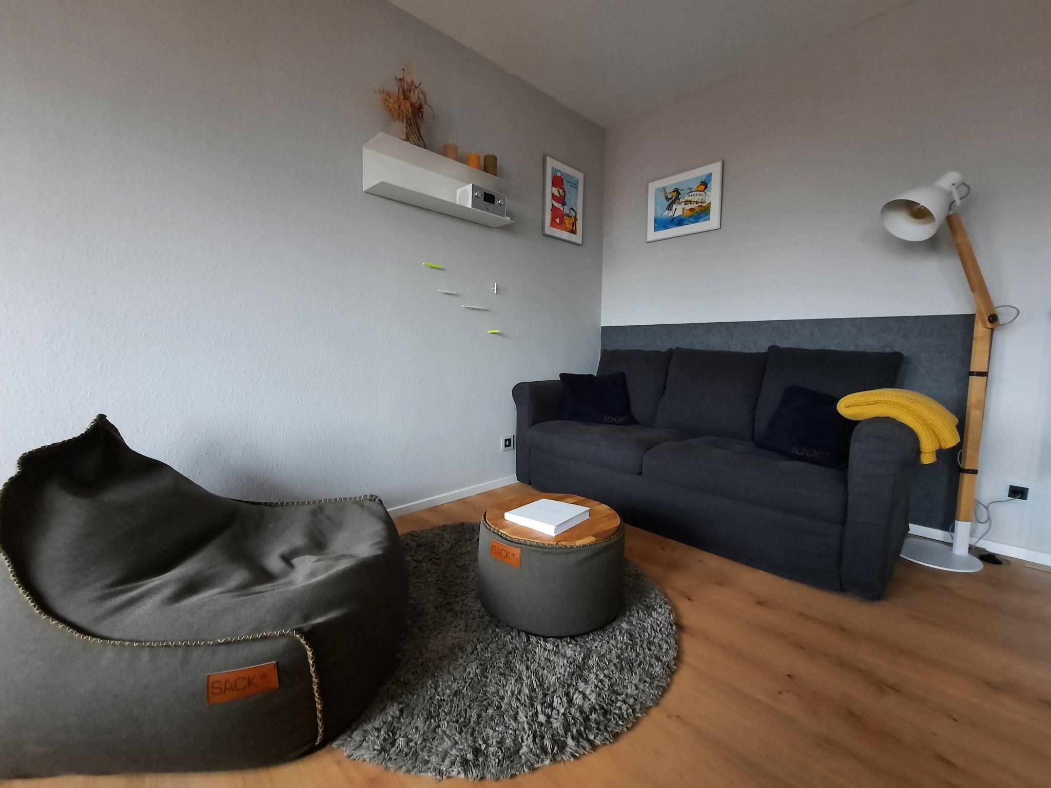 Im Wohnbereich kann man den Tag entspannt auf dem gemütlichen Sofa oder dem Sitzsack (SACKit) ausklingen lassen. Es bietet Internetradio, kostenloses WLAN und einen Smart-TV inklusive Sonos-Soundbar, der sich in verschiedene Positionen verstellen lässt. Ebenso steht eine Playstation 4 mit diversen Spielen zur Verfügung.