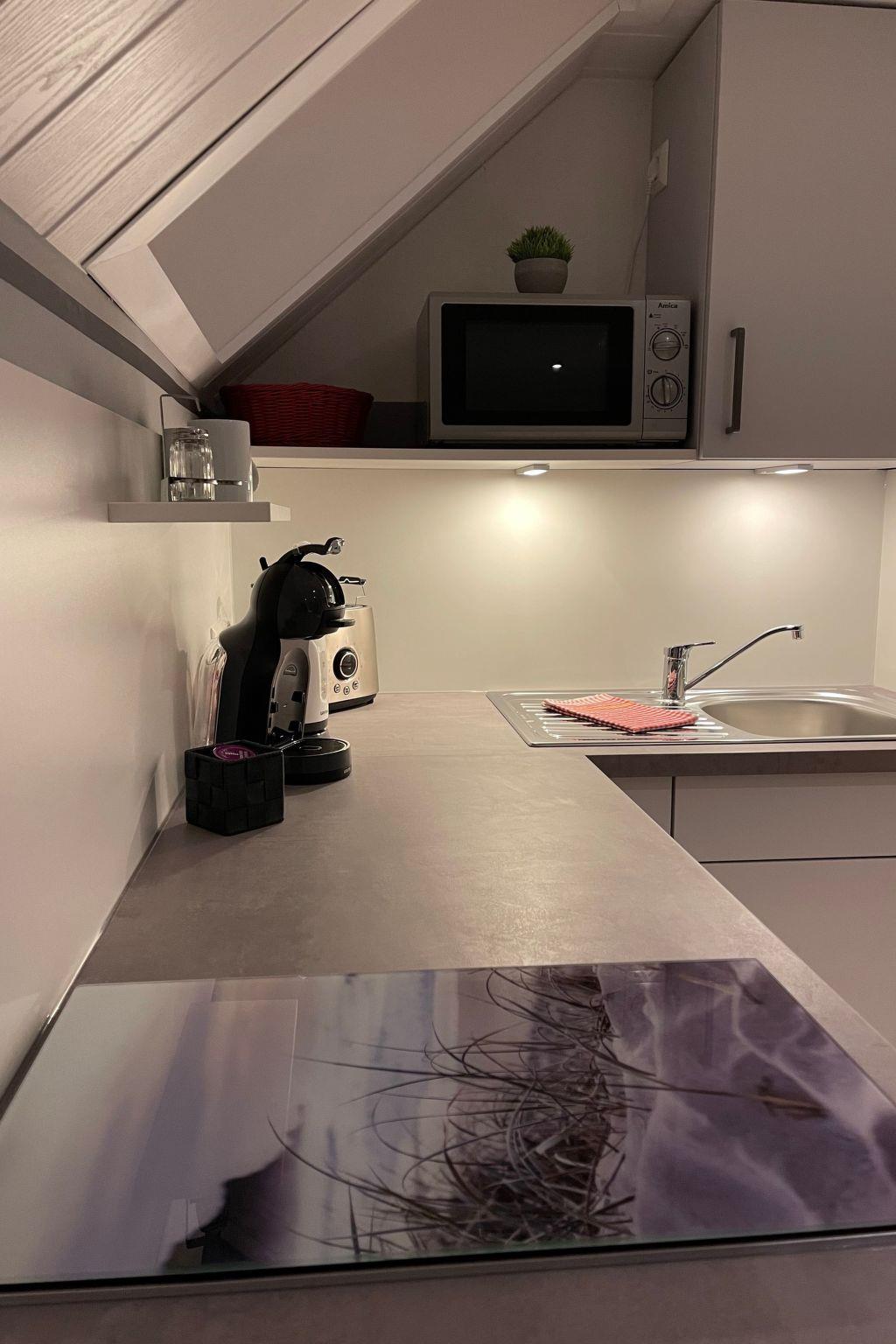 Im Inneren der Wohnung finden Gäste eine harmonische Verbindung aus Komfort und Funktionalität vor. Die Ausstattung umfasst unter anderem eine Kapsel-Kaffeemaschine, ideal für gemütliche Morgenstunden, und eine Elektro-Auto-Aufladestation, die umweltbewusste Reisende sicherlich zu schätzen wissen. Ausgestattet mit einem durchdachten Wohnbereich, der durch erneuerbare Energien und Solarenergie unterstützt wird, sorgt die Wohnung für ein umweltfreundliches Wohngefühl. Ein Wasserkocher vervollständigt die umfangreiche Ausstattungsliste, sodass sich Gäste wie zu Hause fühlen können.