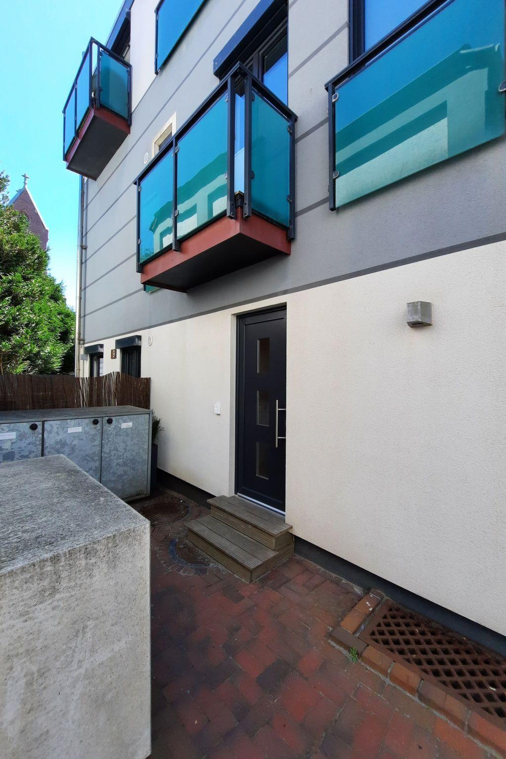 Die Wohnung befindet sich auf der abgewandten Straßenseite der Kirchstraße („Hofseite“). Die Kirchstraße selbst zeichnet sich durch eine ruhige, aber dennoch sehr zentrale Lage aus. Der Weststrand ist ca. 240 m entfernt, der Kurplatz mit dem angrenzenden Badehaus ist in ca. 350 m zu erreichen.
