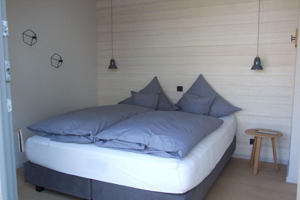 Das Apartement im Erdgeschoss verfügt über 2 Schlafzimmer mit Boxspringbetten und TV , einen geräumigen Wohn-Essbereich mit voll ausgestatteter Küchenzeile mit Nespressomaschine. Der Wohnbereich ist ausgestattet mit einem Sitzbereich mit Sofa und einem Esstisch mit 4 Stühlen. Im Wohnbereich befindet sich ein TV und die Soundbox. Die Terrasse verfügt über einen Tisch mit 4 Stühlen, 2 Liegen und eine Bank.