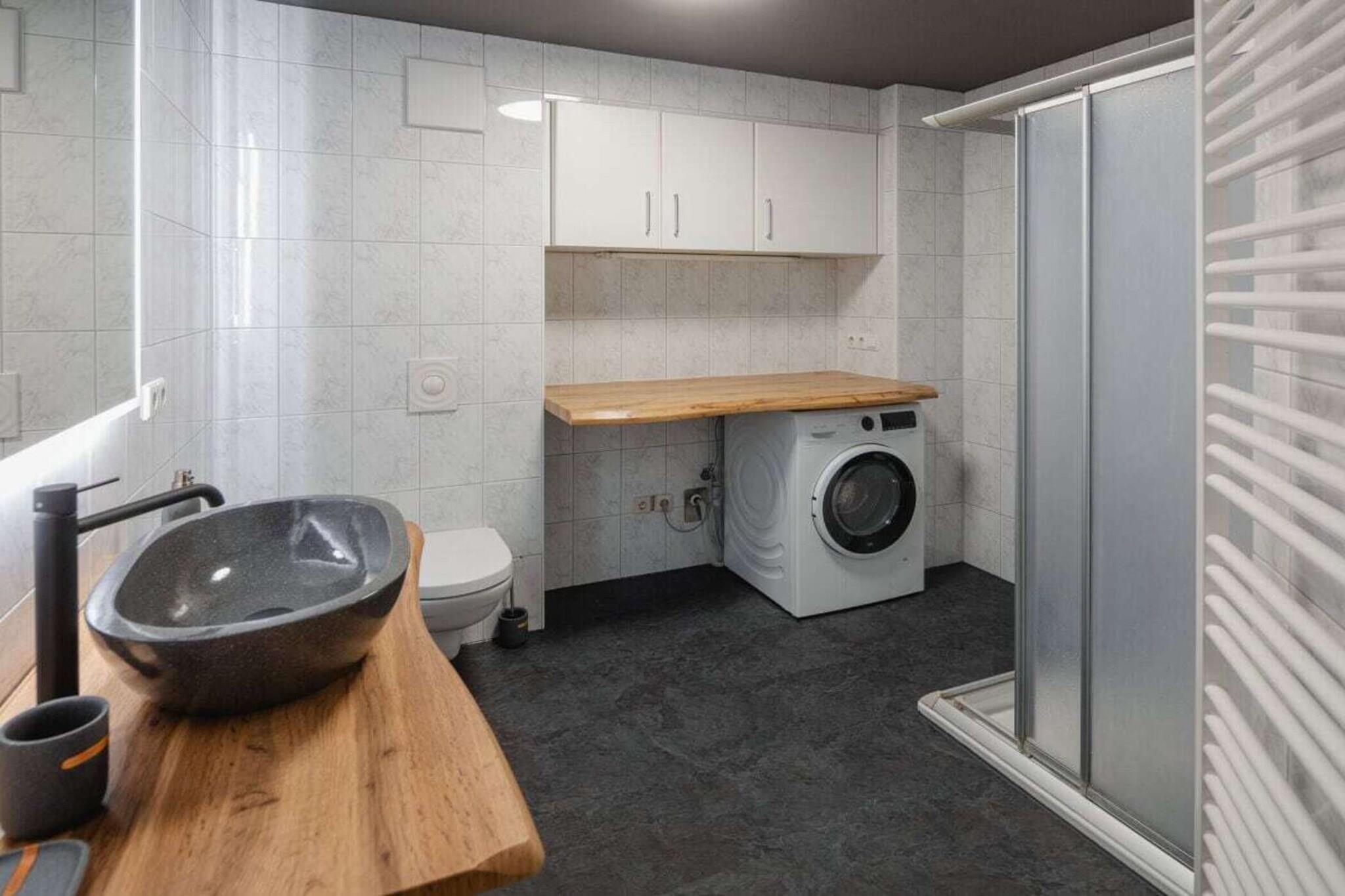 In der 3. Etage: (Küche(Kochplatte, Kochherd, Backofen, Spülmaschine, Kühlschrank), Wohn/Esszimmer(, TV, Esstisch), Schlafzimmer(Doppelbett), Badezimmer(Dusche), Abstellraum(, Waschmaschine, Bügelbrett, Bügeleisen, Trockenschrank)) , , Internet, Waschmaschine, Balkon(Balkon), Heizung, Bügelbrett, Bügeleisen, Trockenschrank