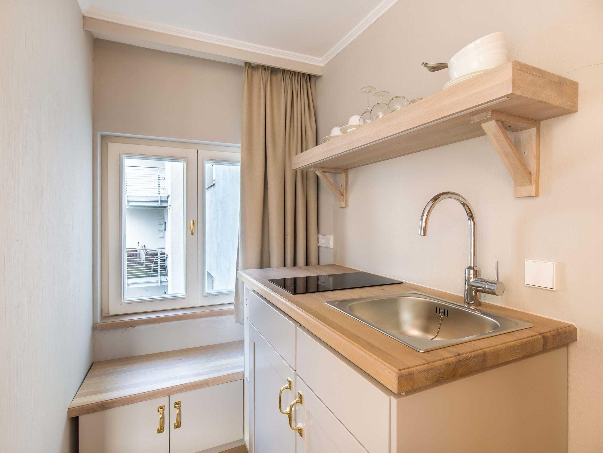 Modernes 1-Raum-Apartment auf Norderney mit neuem Bad, Kochnische und kostenlosem WLAN.