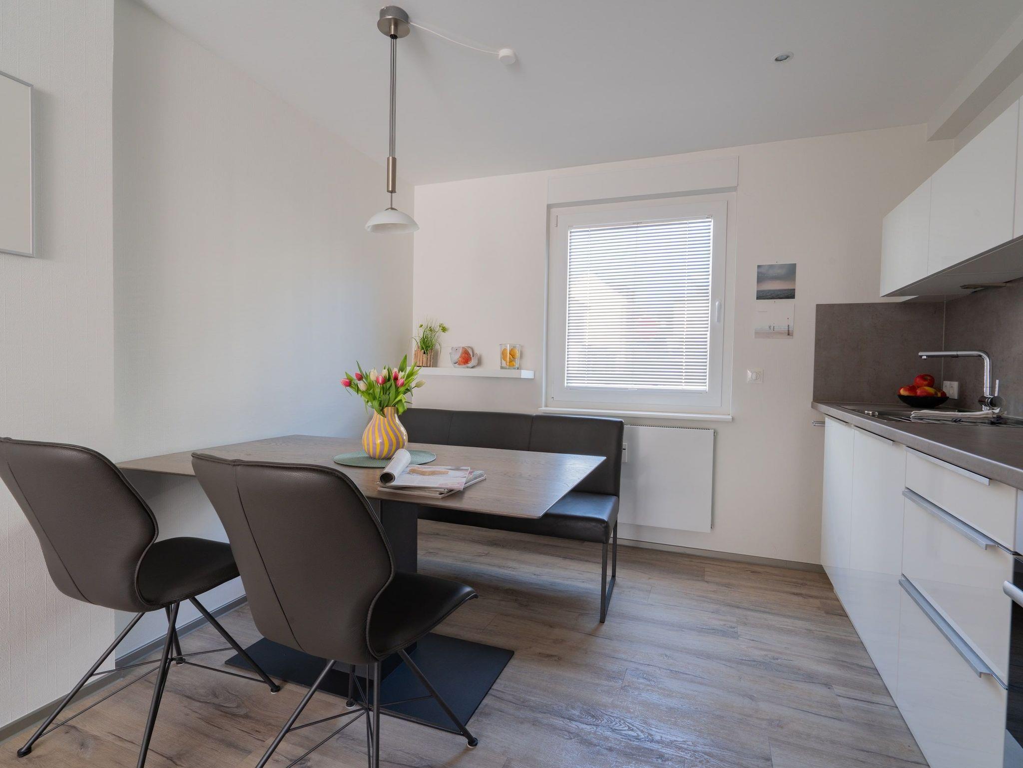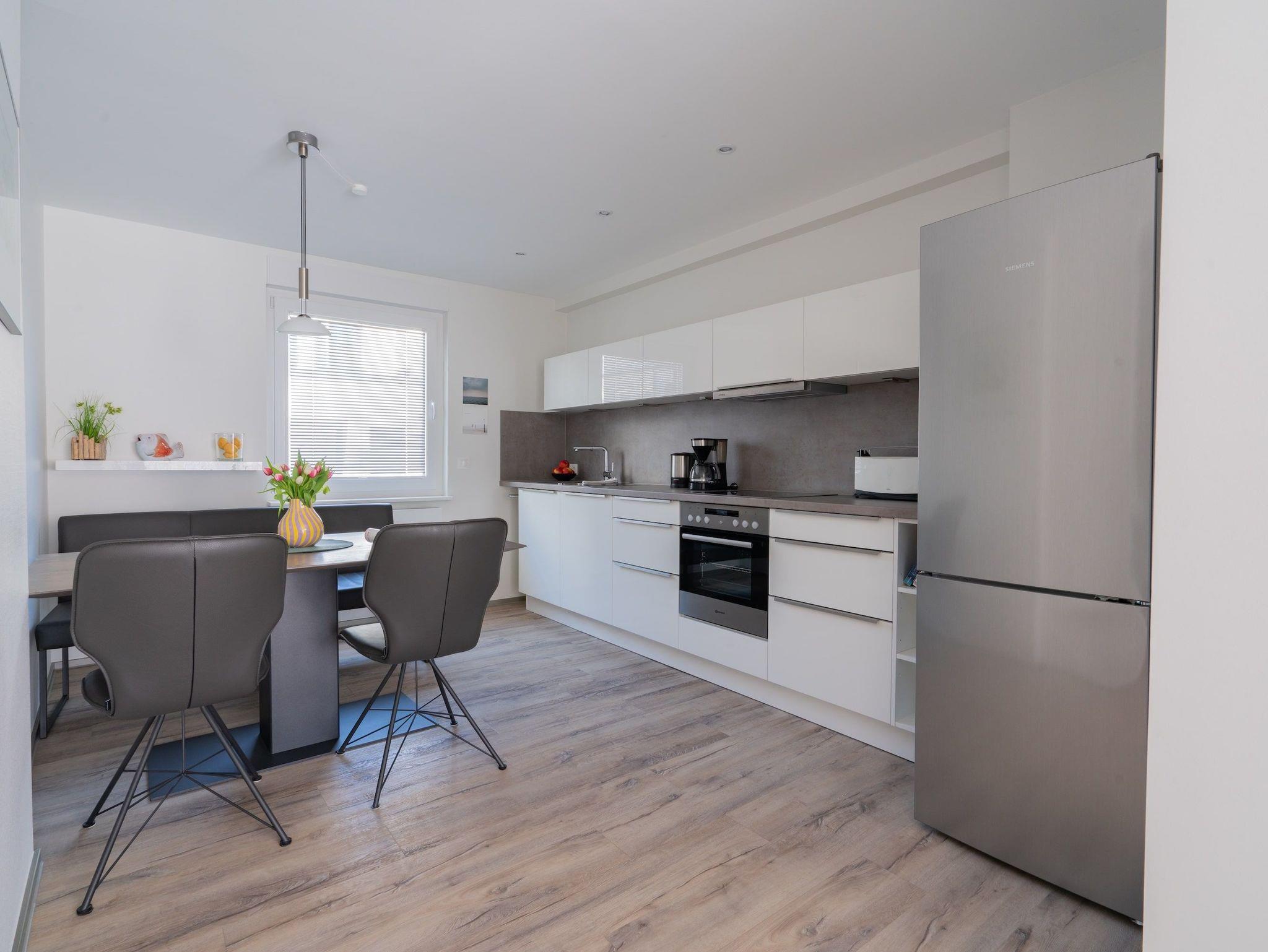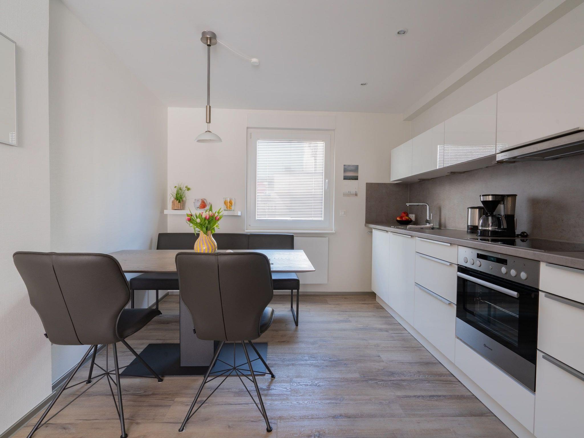 Die offene Küche ist nicht nur funktional, sondern auch stilvoll eingerichtet: Mit Backofen und Senseo-Kaffeemaschine starten Sie genussvoll in jeden Urlaubstag. Und für eine Pause an der frischen Luft bieten die zwei geschützten Balkone zum Innenhof echte Ruheoasen mitten im lebendigen Zentrum.